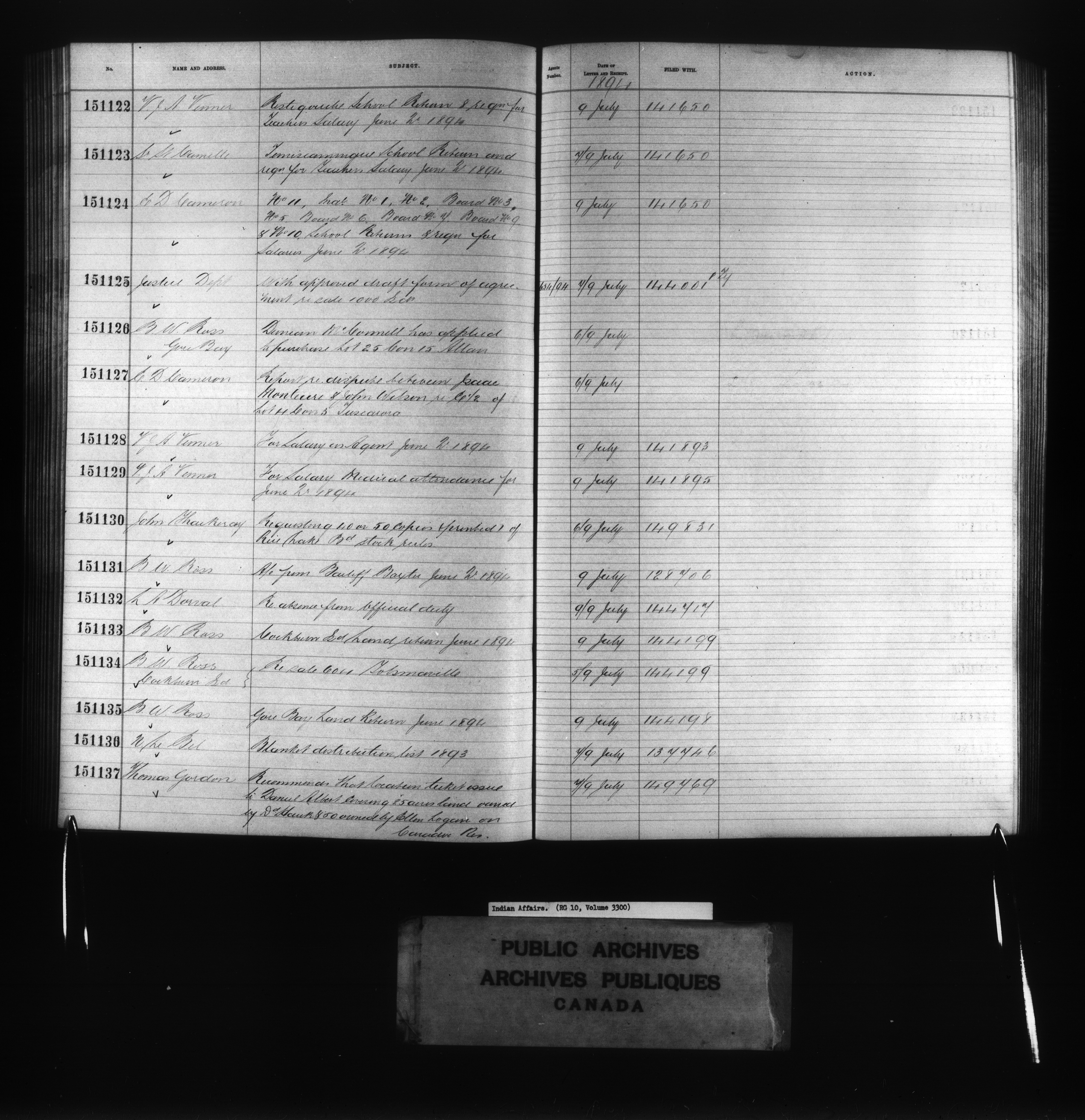 Department of Indian Affairs : Red Series register for Ontario and Quebec - 10730