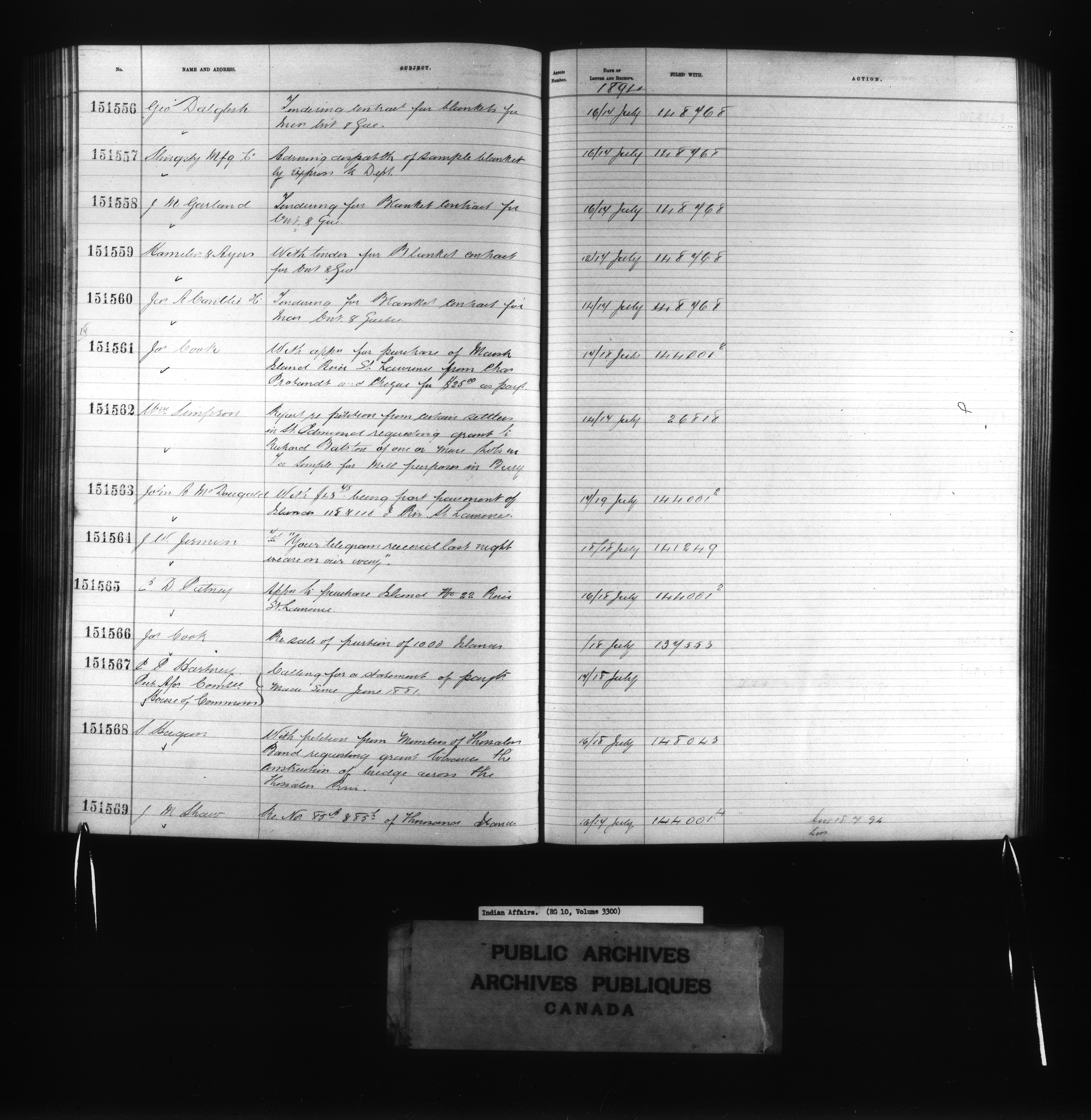 Department of Indian Affairs : Red Series register for Ontario and Quebec - 10730