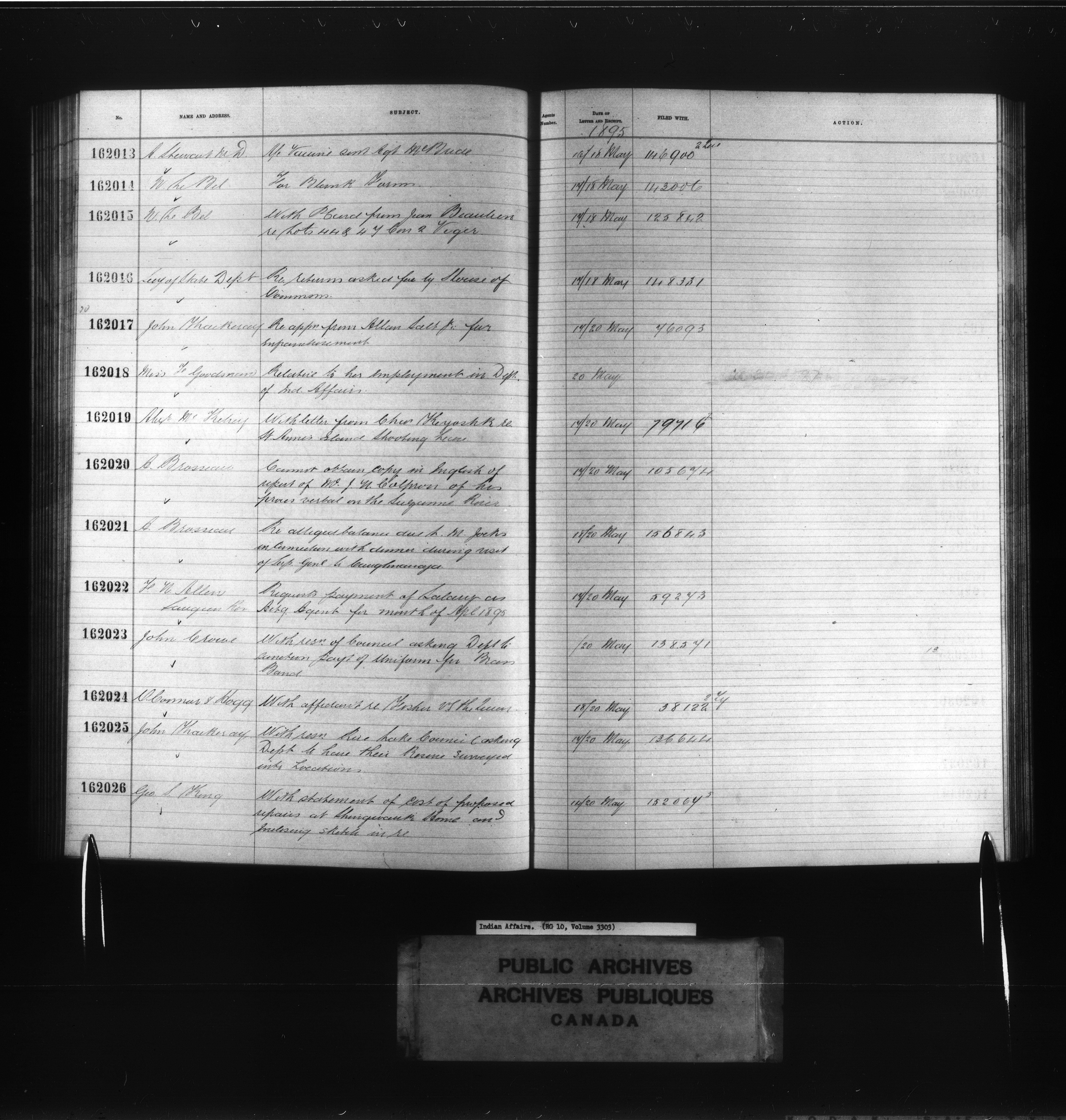 Department of Indian Affairs : Red Series register for Ontario and Quebec - 10731