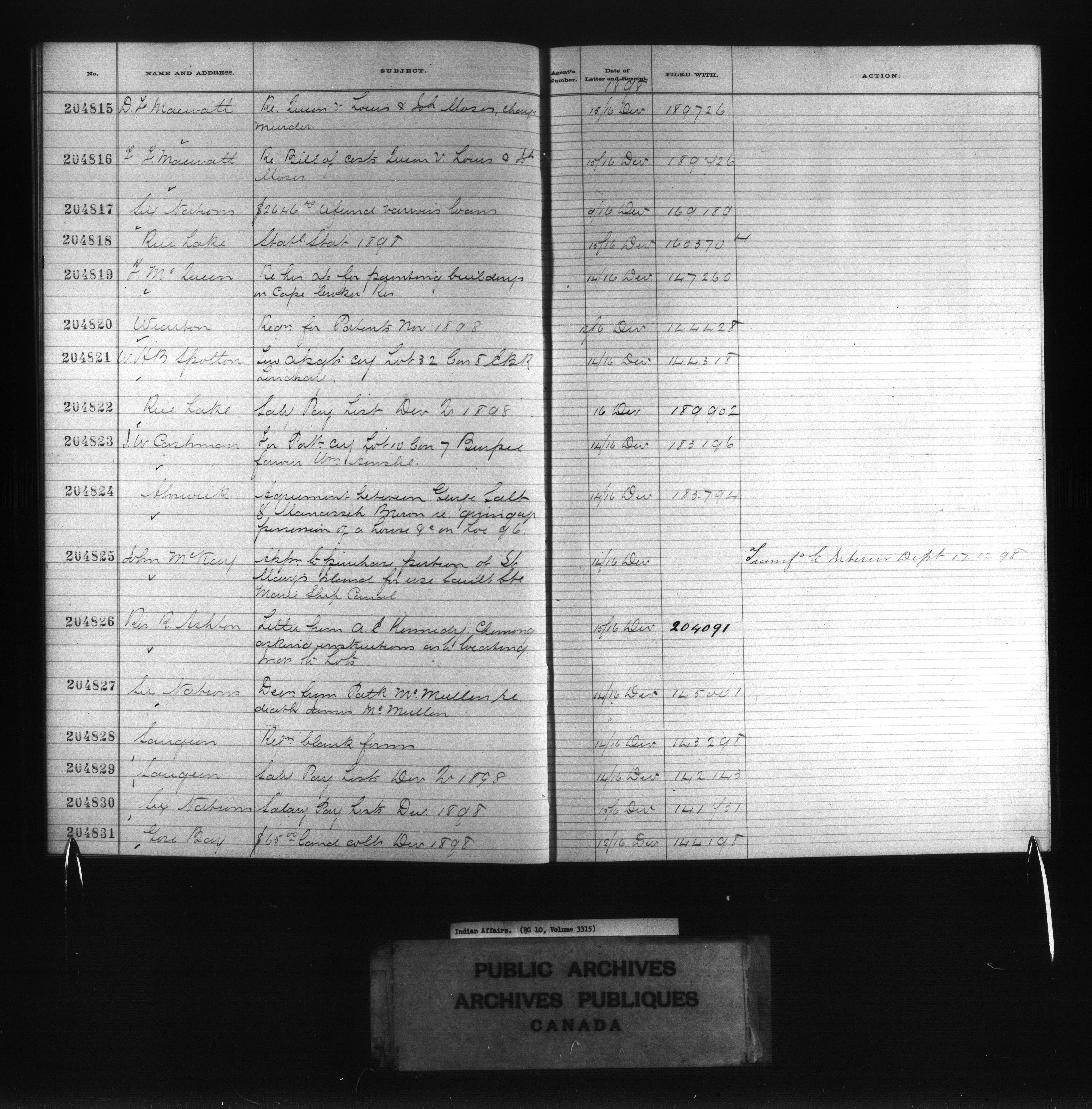 Department of Indian Affairs : Red Series register for Ontario and Quebec - 10734