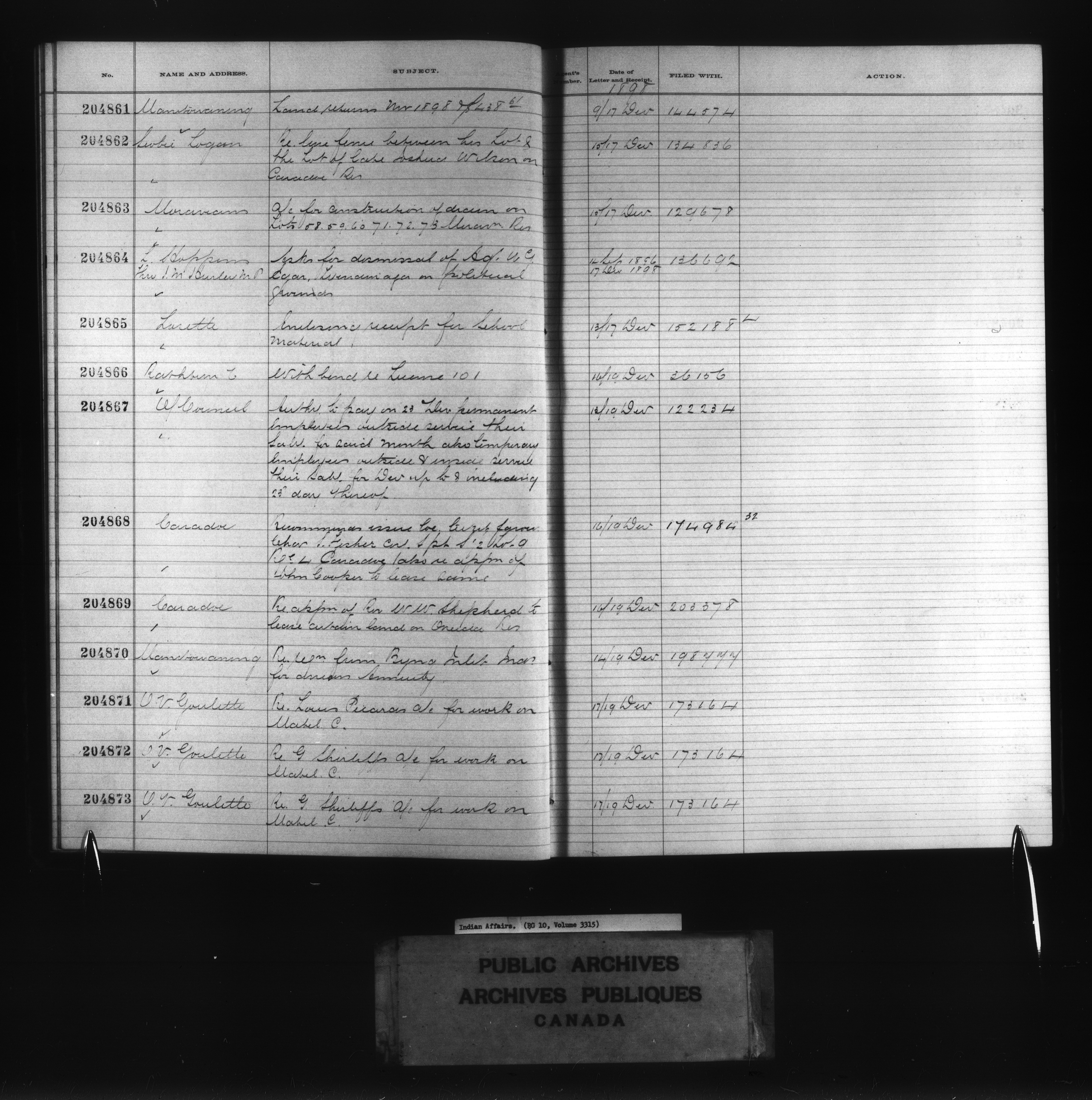 Department of Indian Affairs : Red Series register for Ontario and Quebec - 10734
