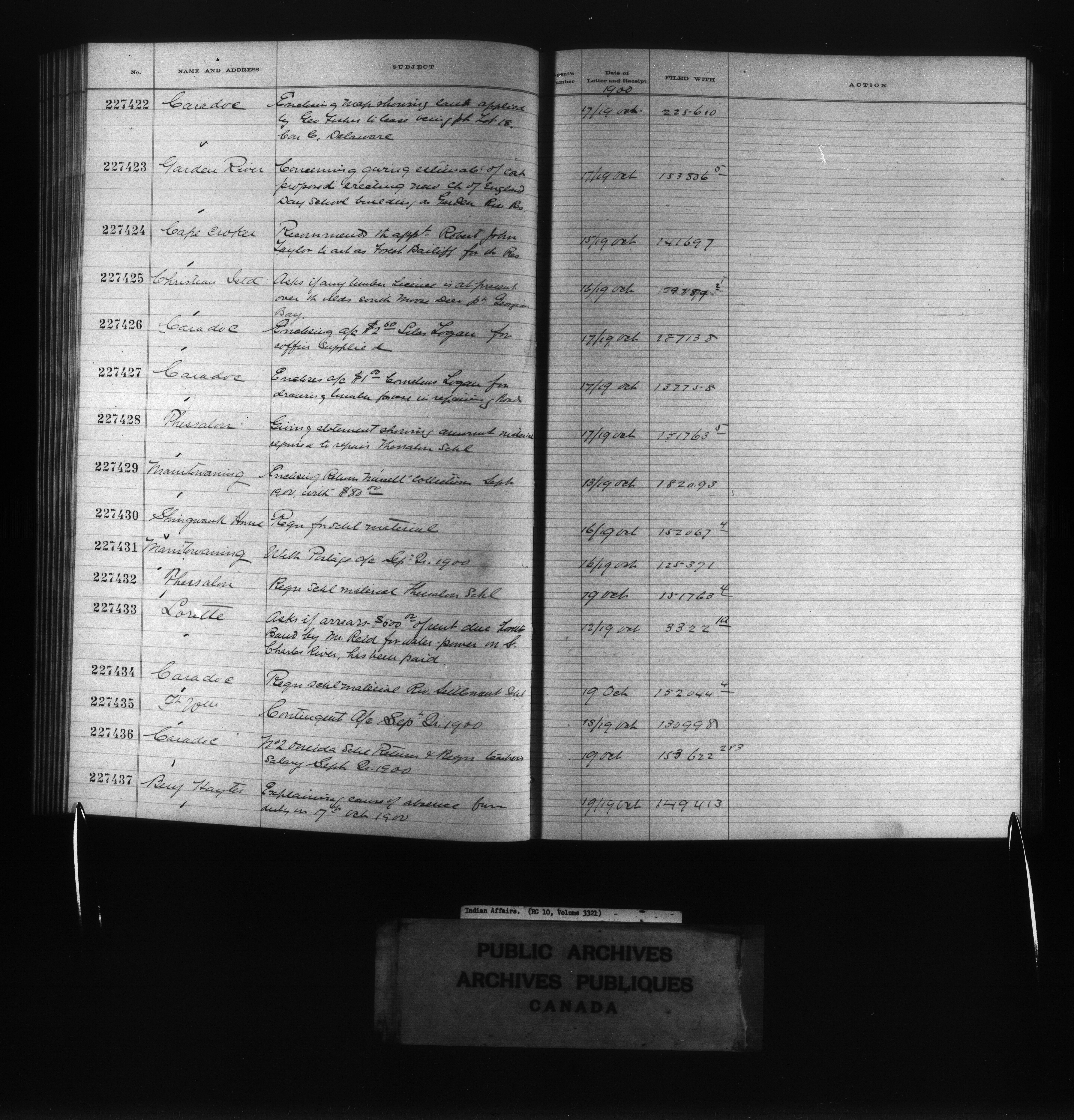 Department of Indian Affairs : Red Series register for Ontario and Quebec - 10737