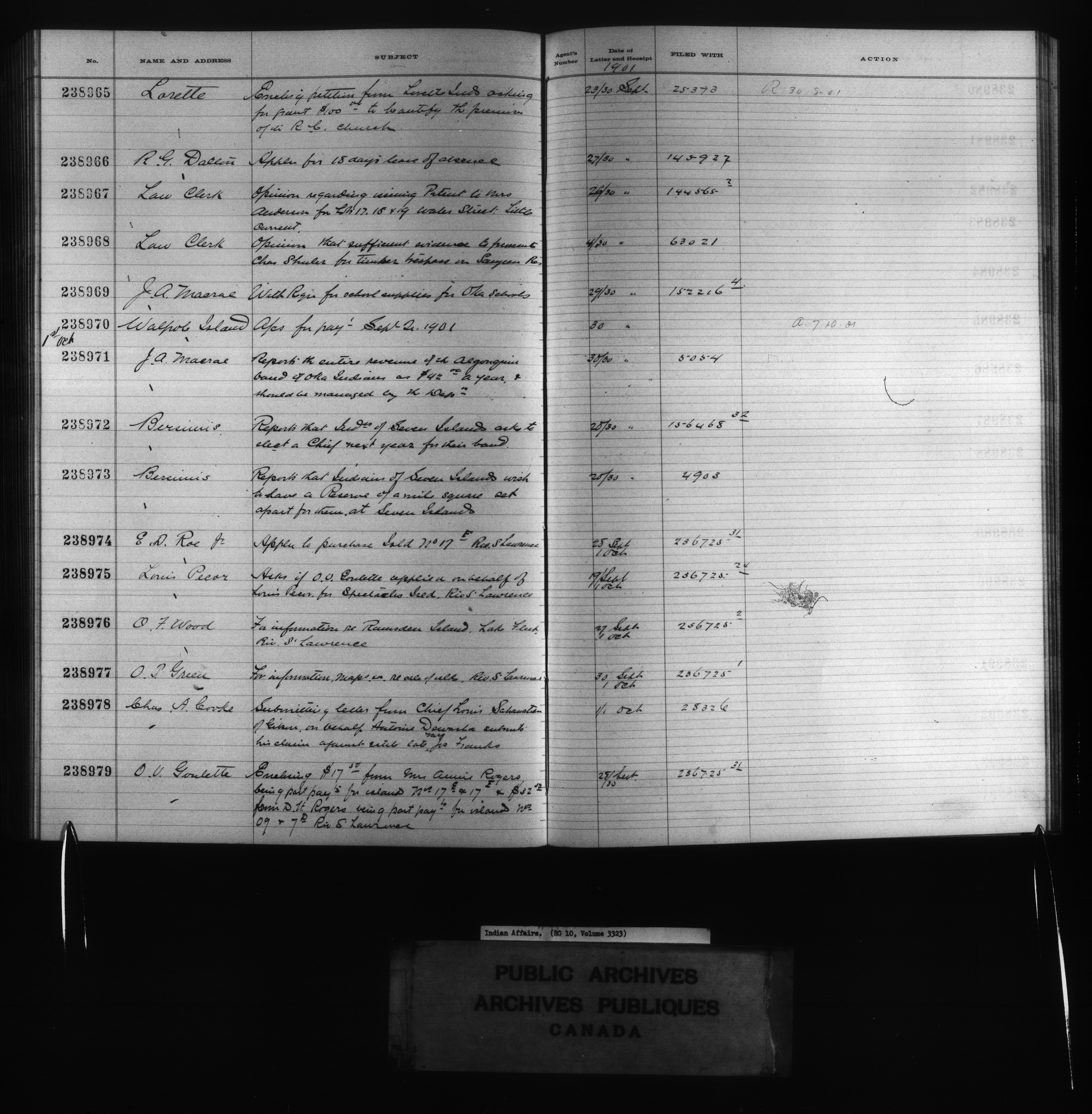 Department of Indian Affairs : Red Series register for Ontario and Quebec - 10738