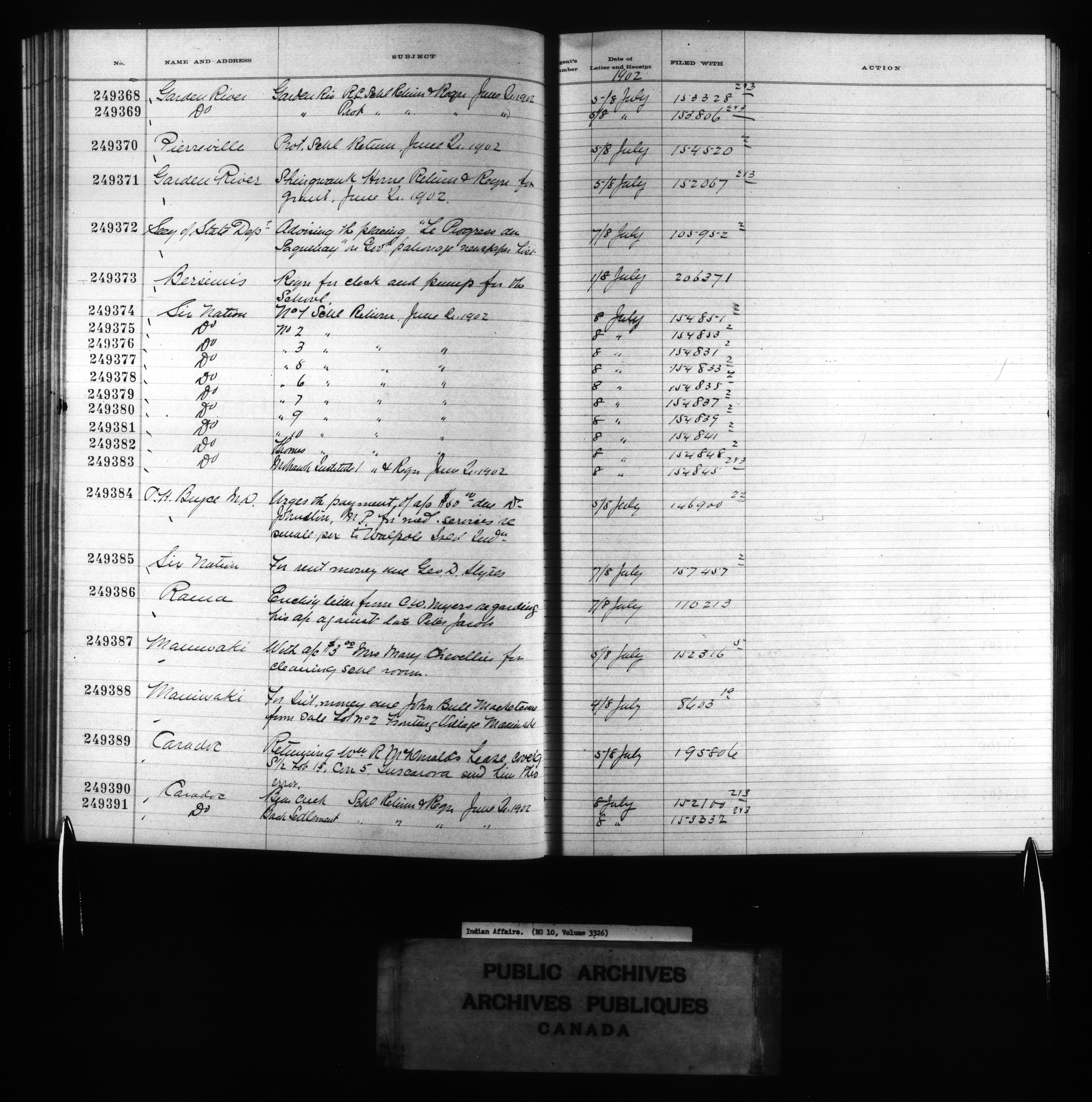 Department of Indian Affairs : Red Series register for Ontario and Quebec - 10739