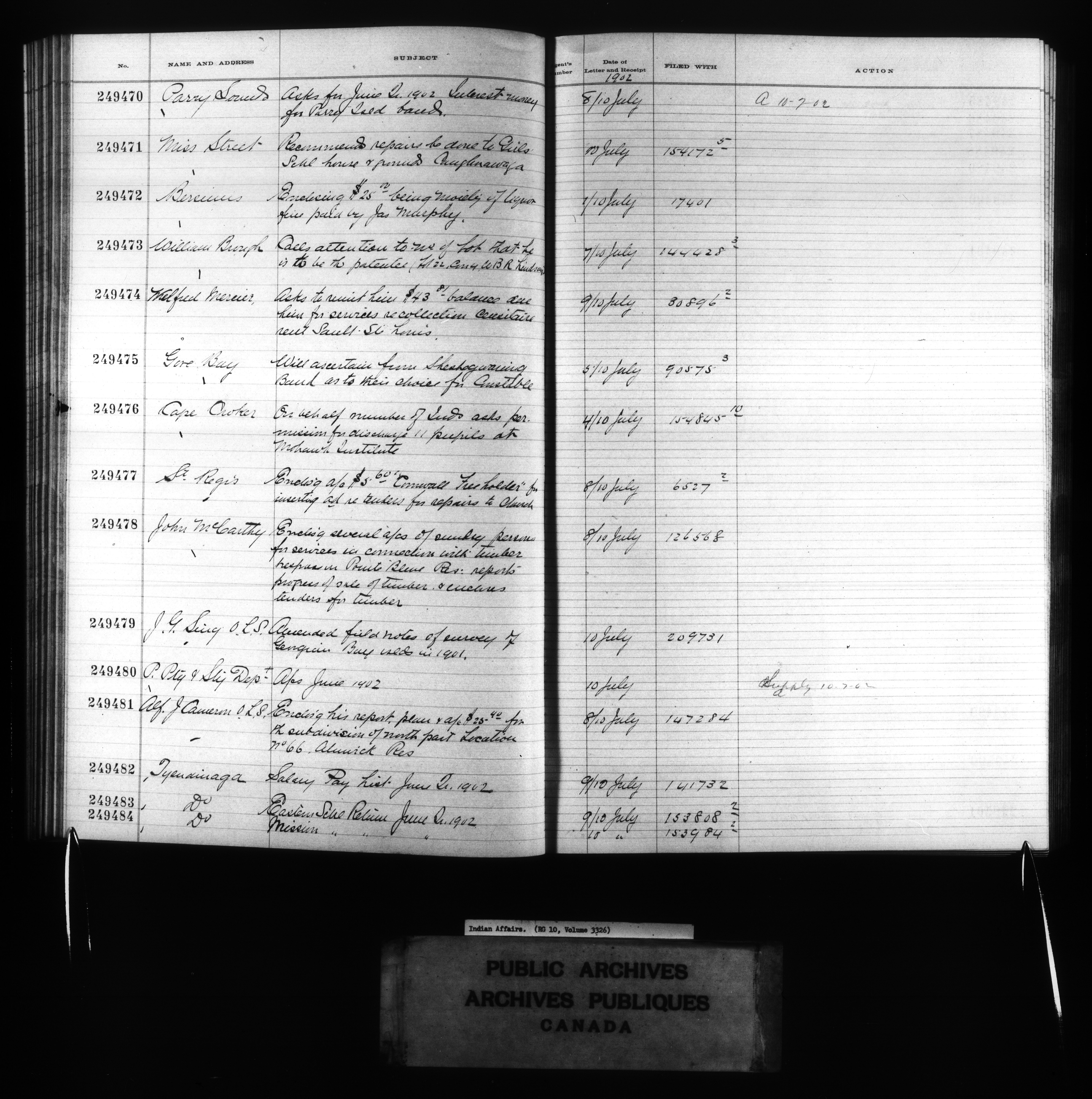 Department of Indian Affairs, Headquarters central registry system :registers, indices and indexed registers : C-10739