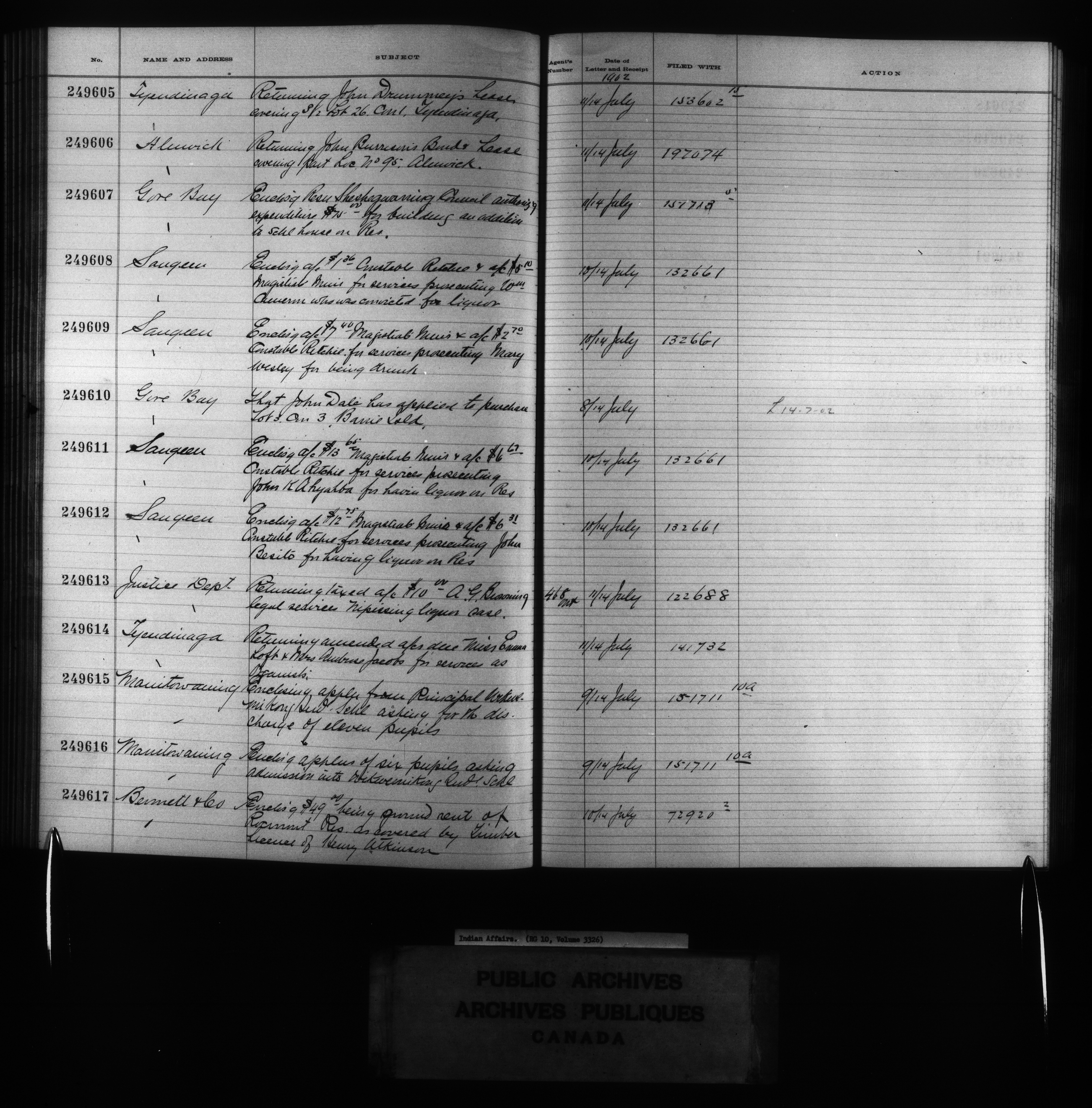 Department of Indian Affairs : Red Series register for Ontario and Quebec - 10739