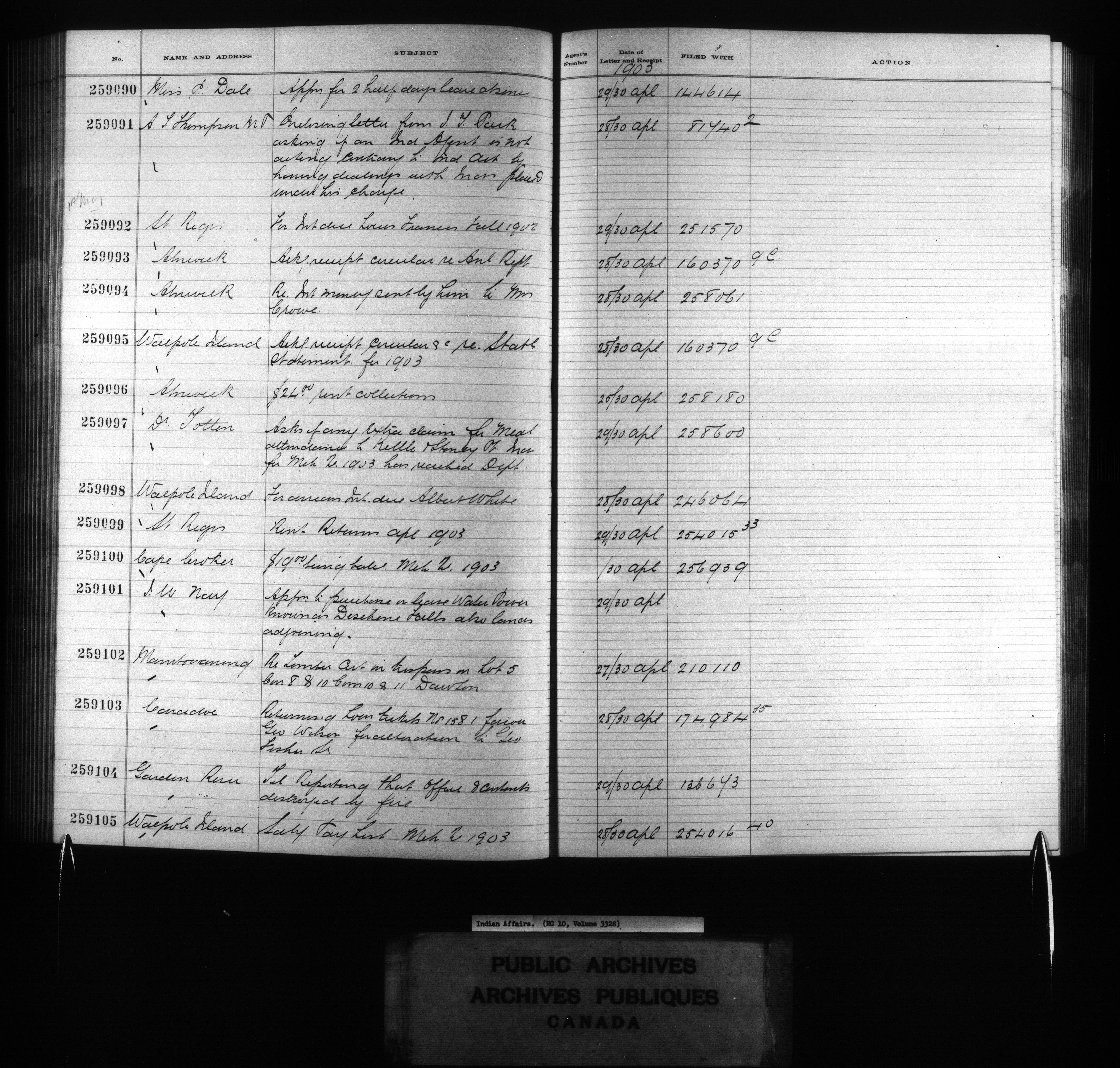 Department of Indian Affairs, Headquarters central registry system :registers, indices and indexed registers : C-10739