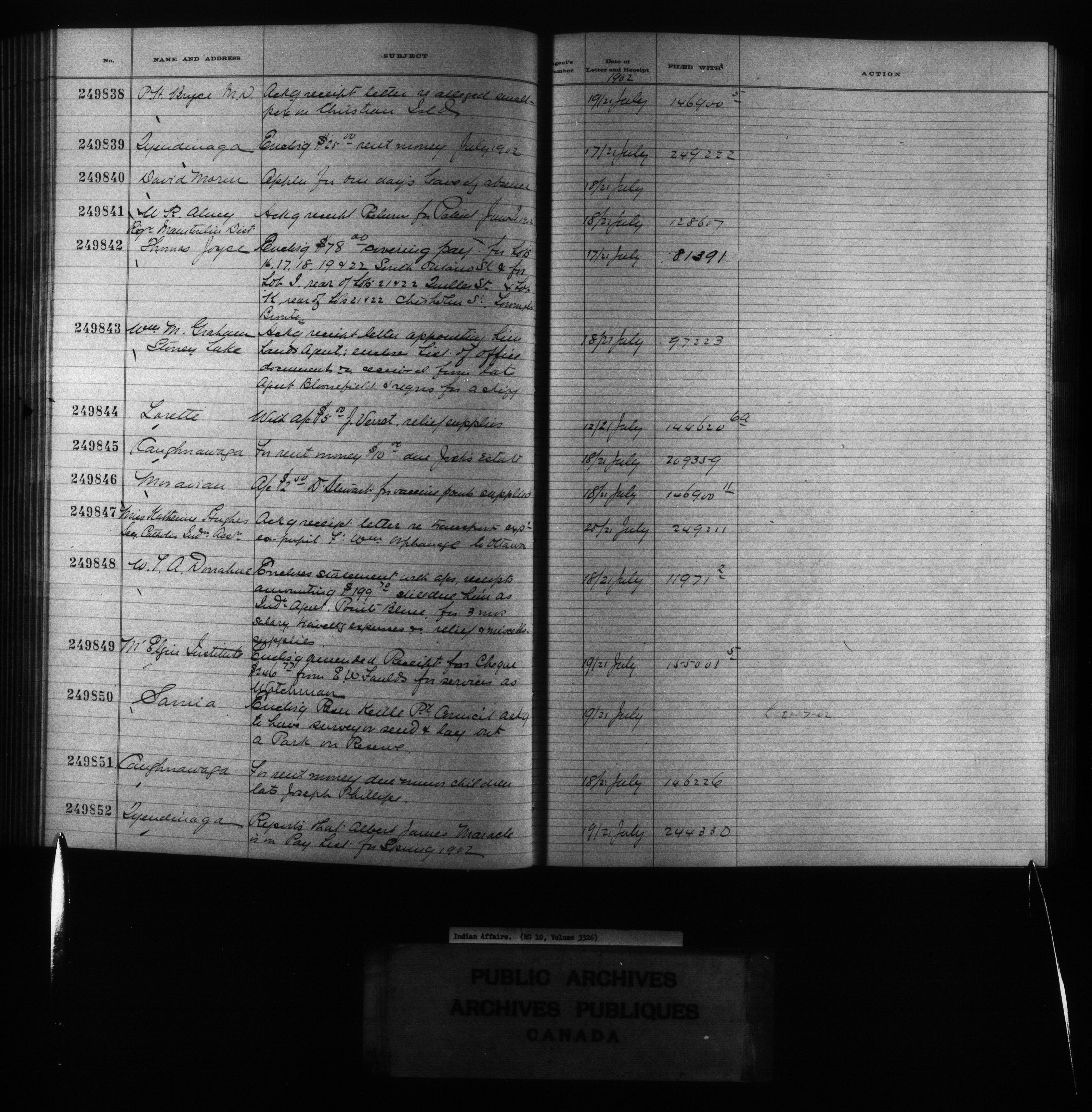 Department of Indian Affairs : Red Series register for Ontario and Quebec - 10739