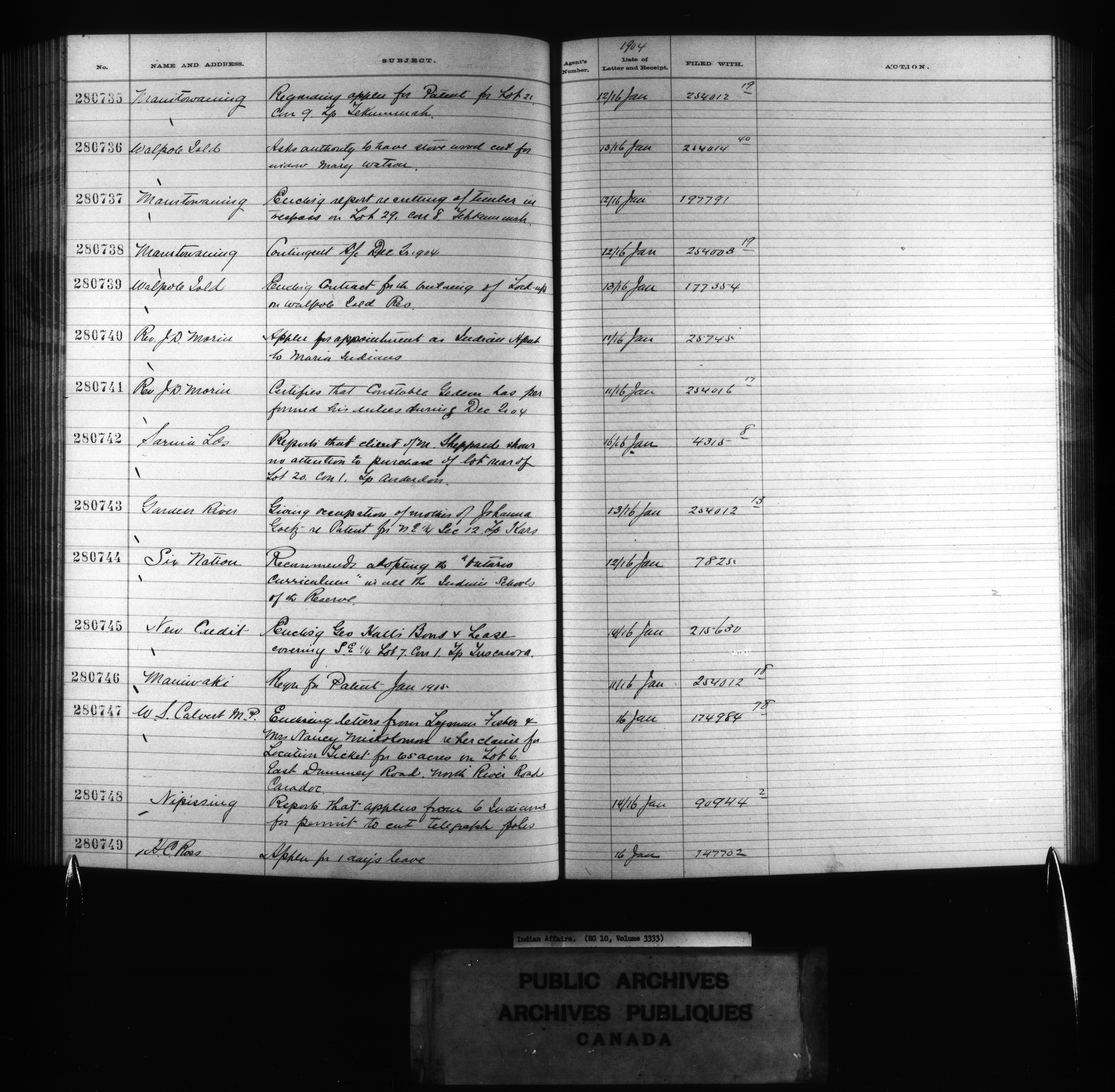 Department of Indian Affairs : Red Series register for Ontario and Quebec - 10741