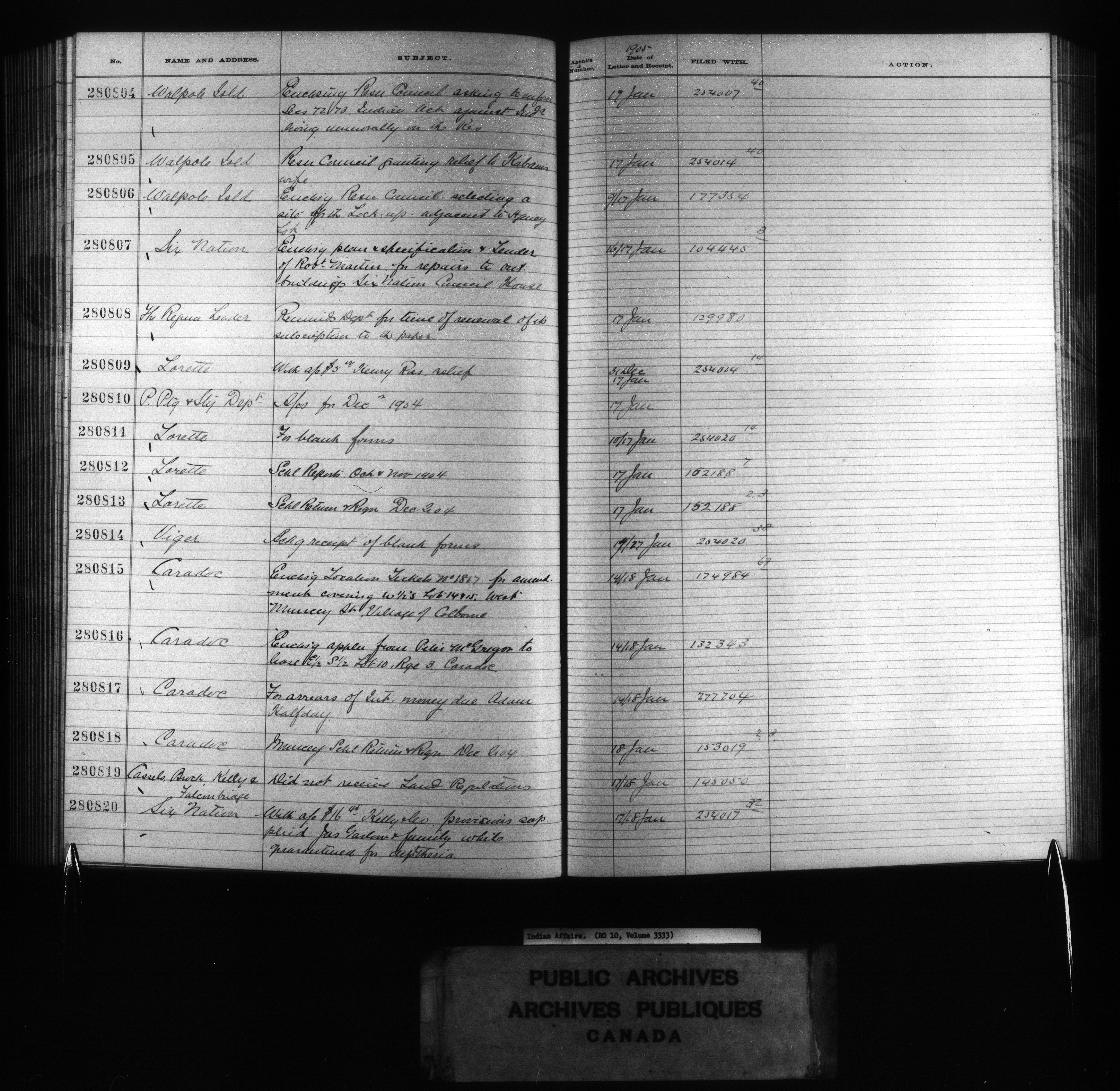 Department of Indian Affairs : Red Series register for Ontario and Quebec - 10741