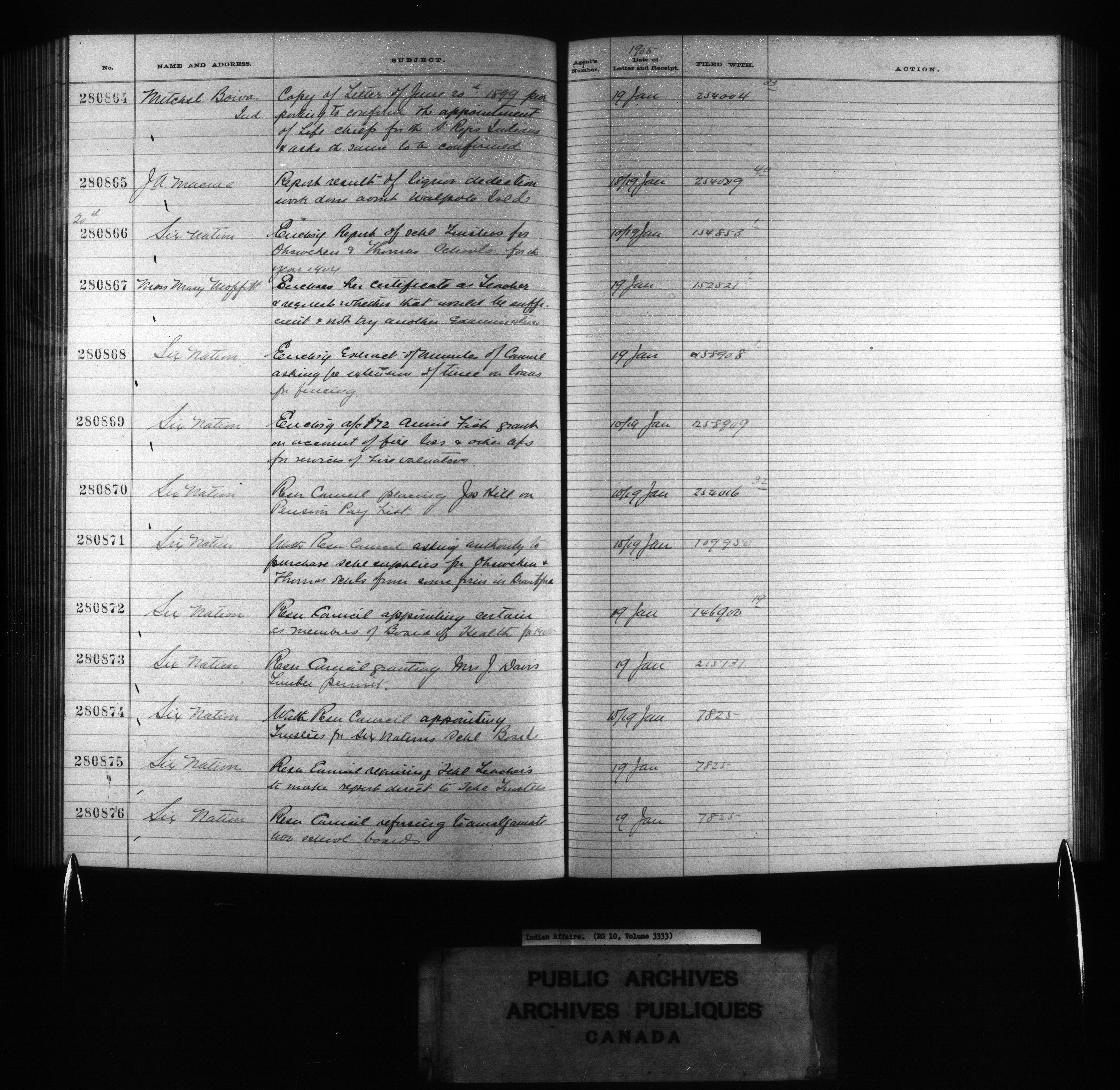 Department of Indian Affairs, Headquarters central registry system :registers, indices and indexed registers : C-10741