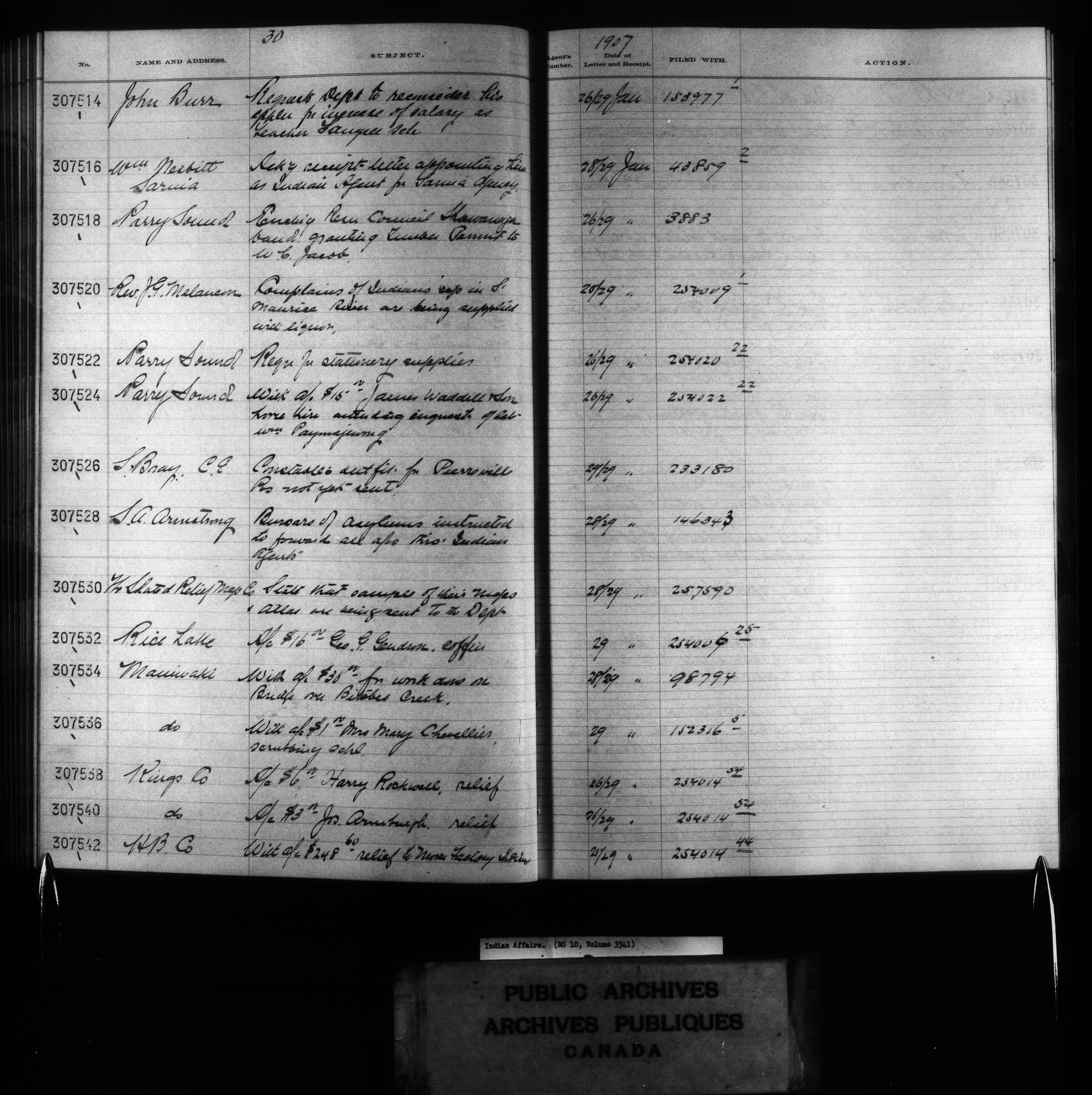 Department of Indian Affairs : Red Series register for Ontario and Quebec - 10744