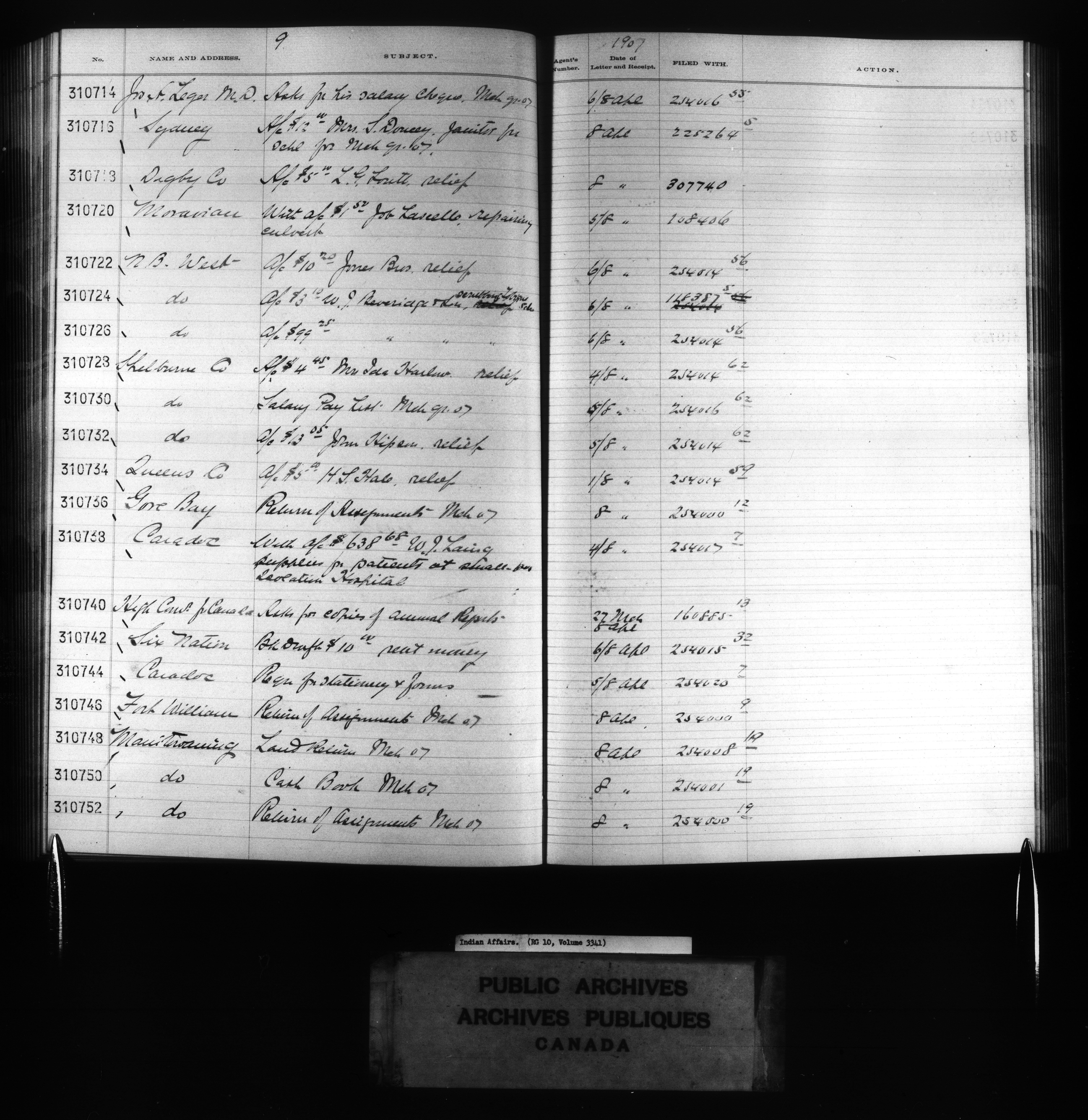 Department of Indian Affairs, Headquarters central registry system :registers, indices and indexed registers : C-10745