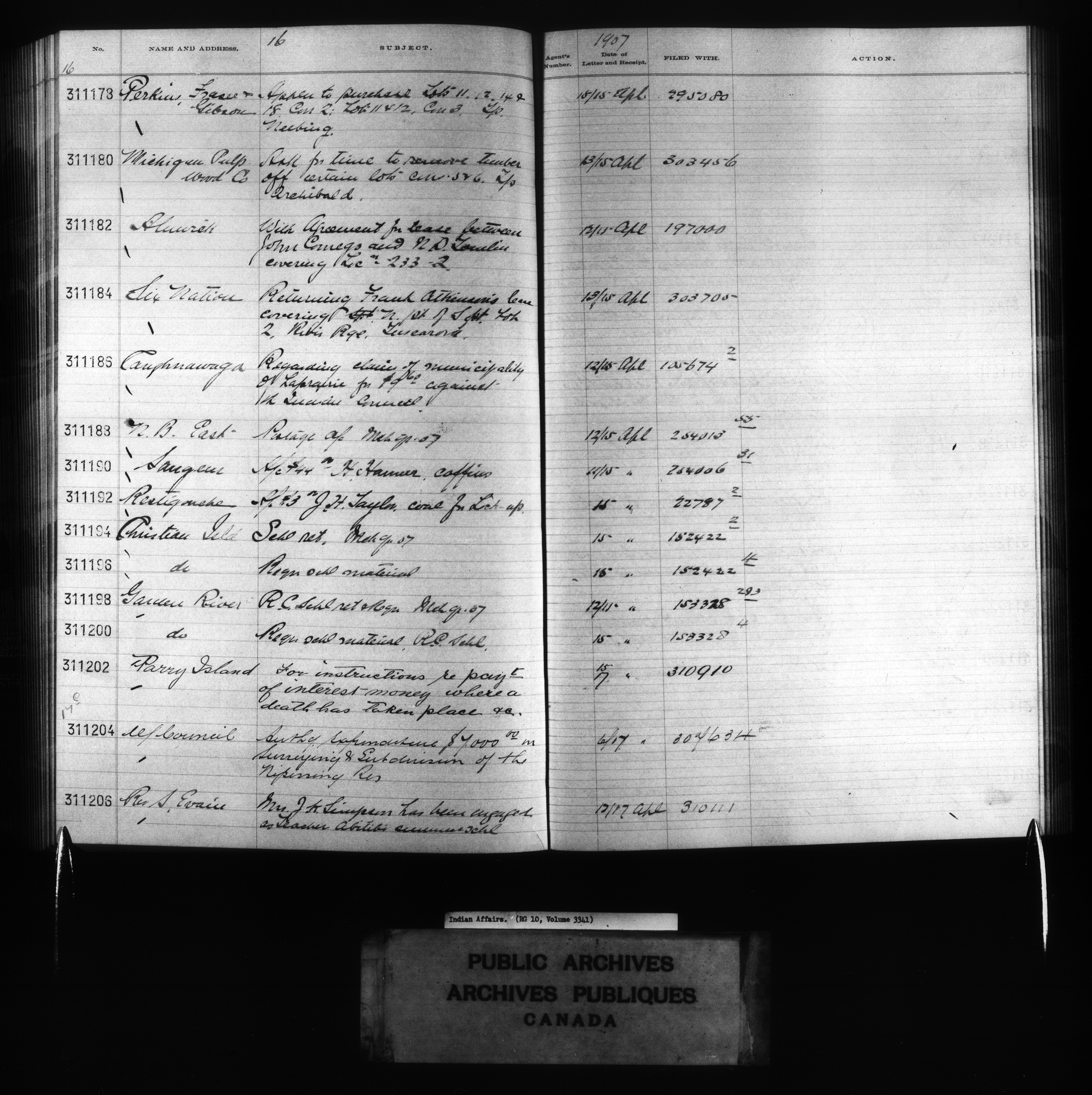 Department of Indian Affairs, Headquarters central registry system :registers, indices and indexed registers : C-10745