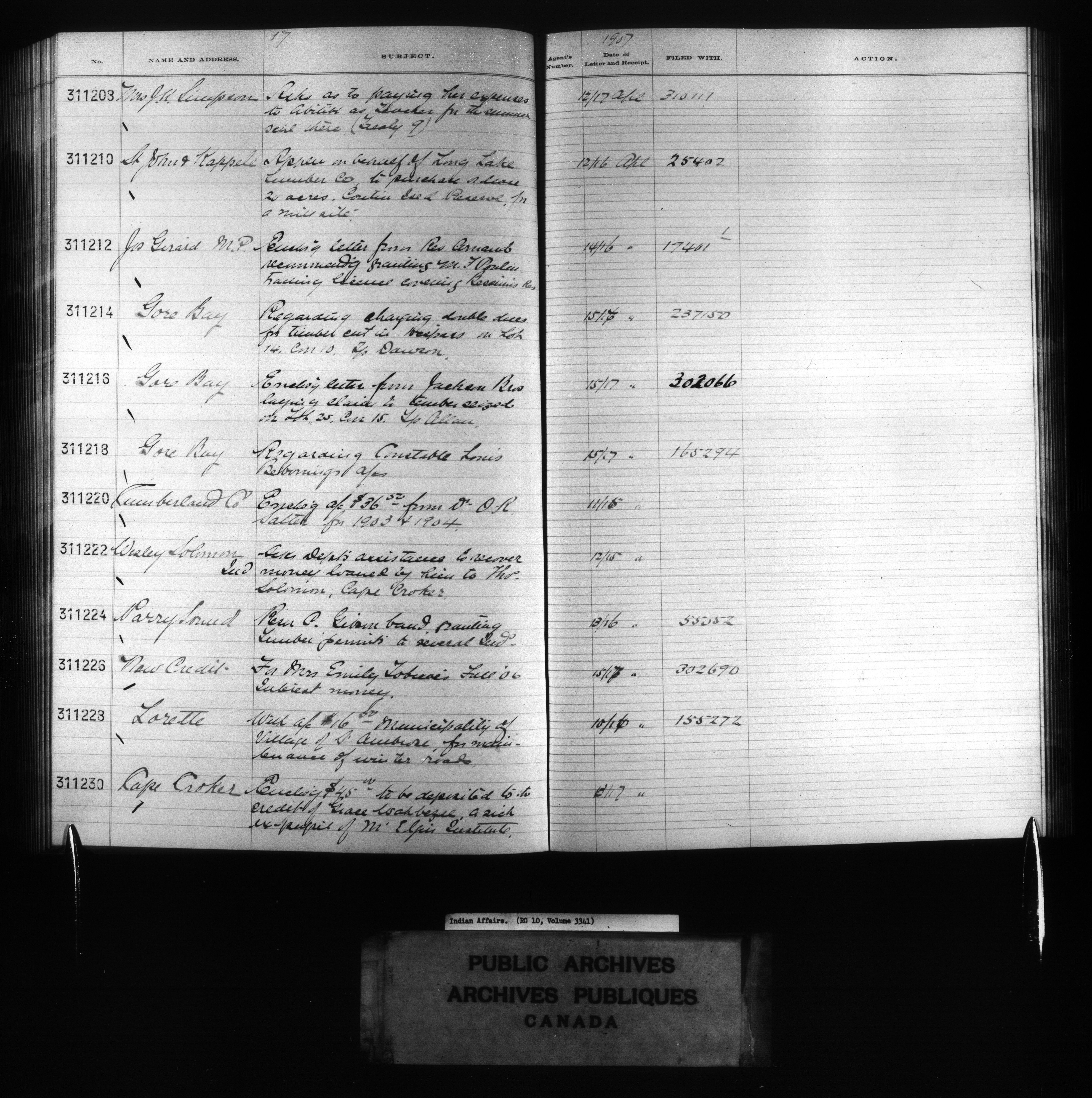 Department of Indian Affairs, Headquarters central registry system :registers, indices and indexed registers : C-10745