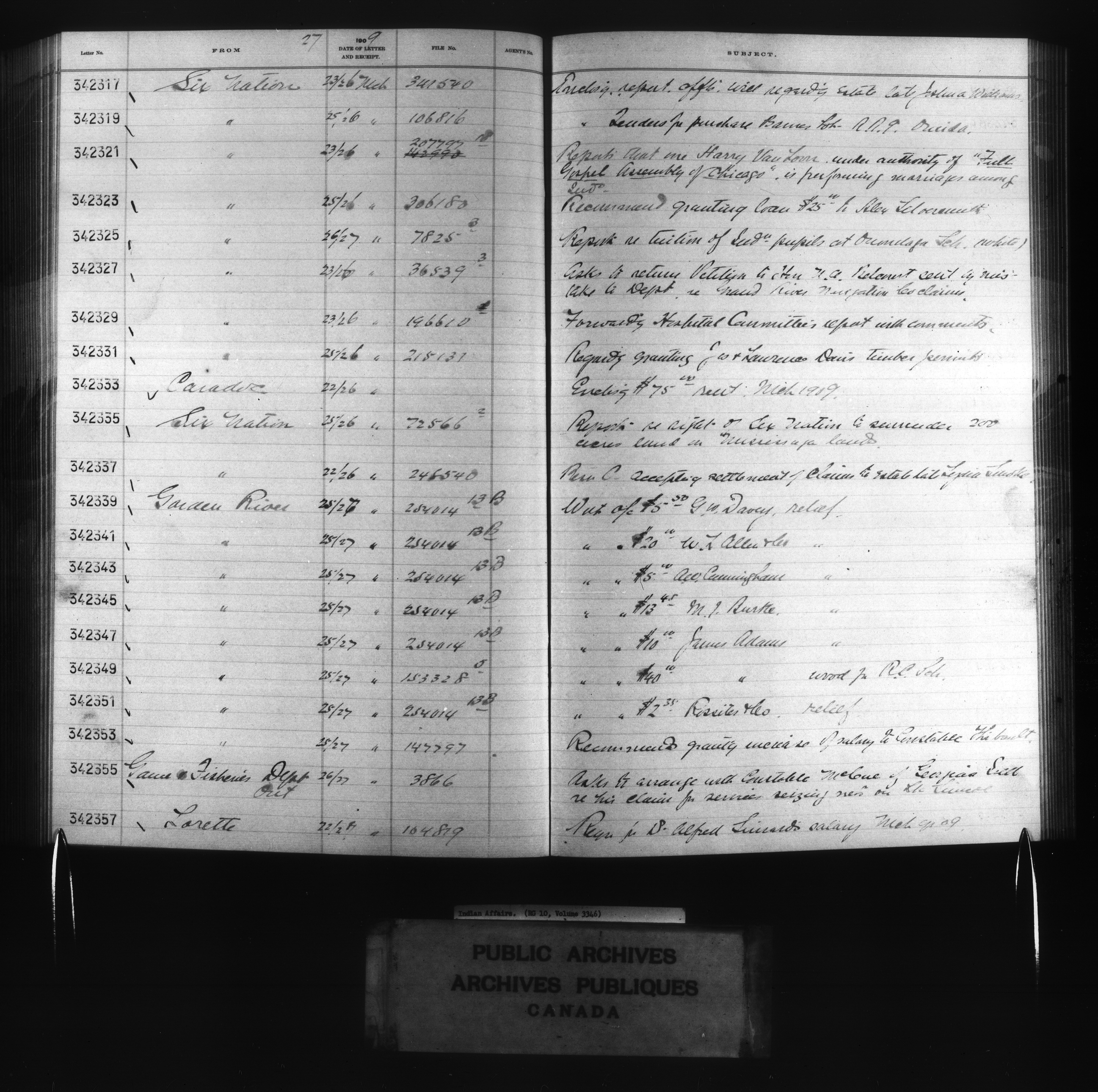 Department of Indian Affairs : Red Series register for Ontario and Quebec - 10747