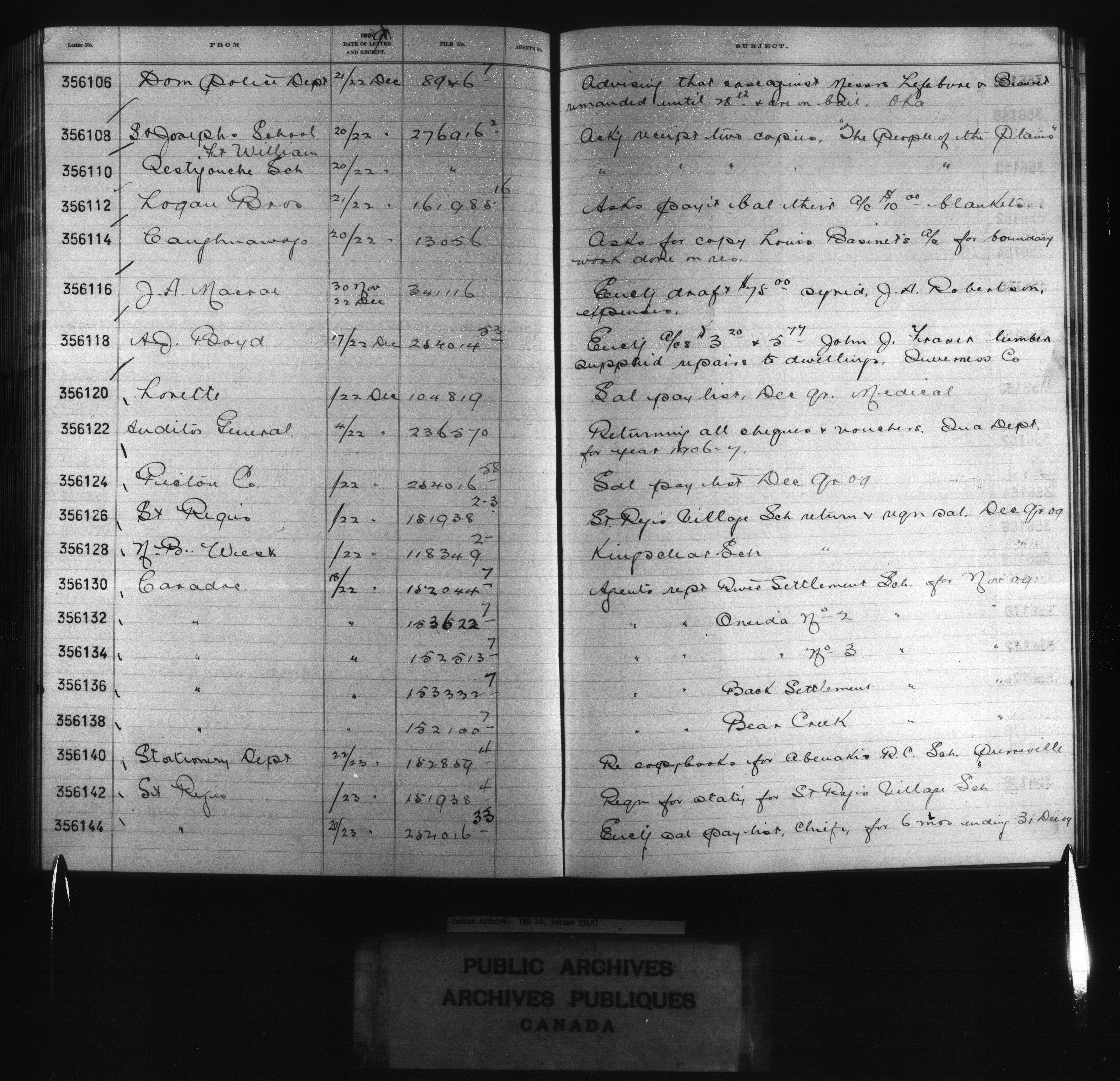 Department of Indian Affairs : Red Series register for Ontario and Quebec - 10747