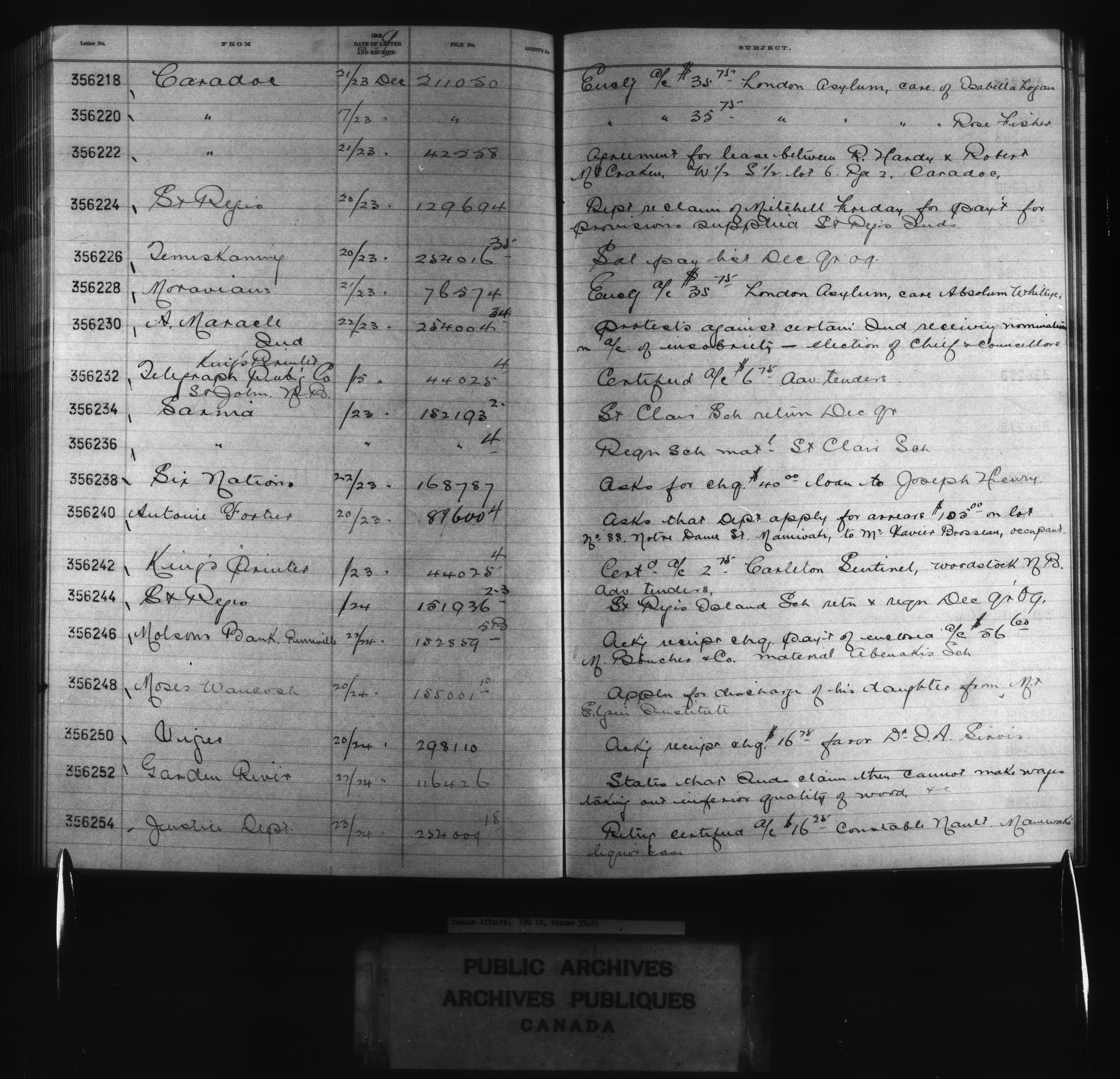 Department of Indian Affairs : Red Series register for Ontario and Quebec - 10747