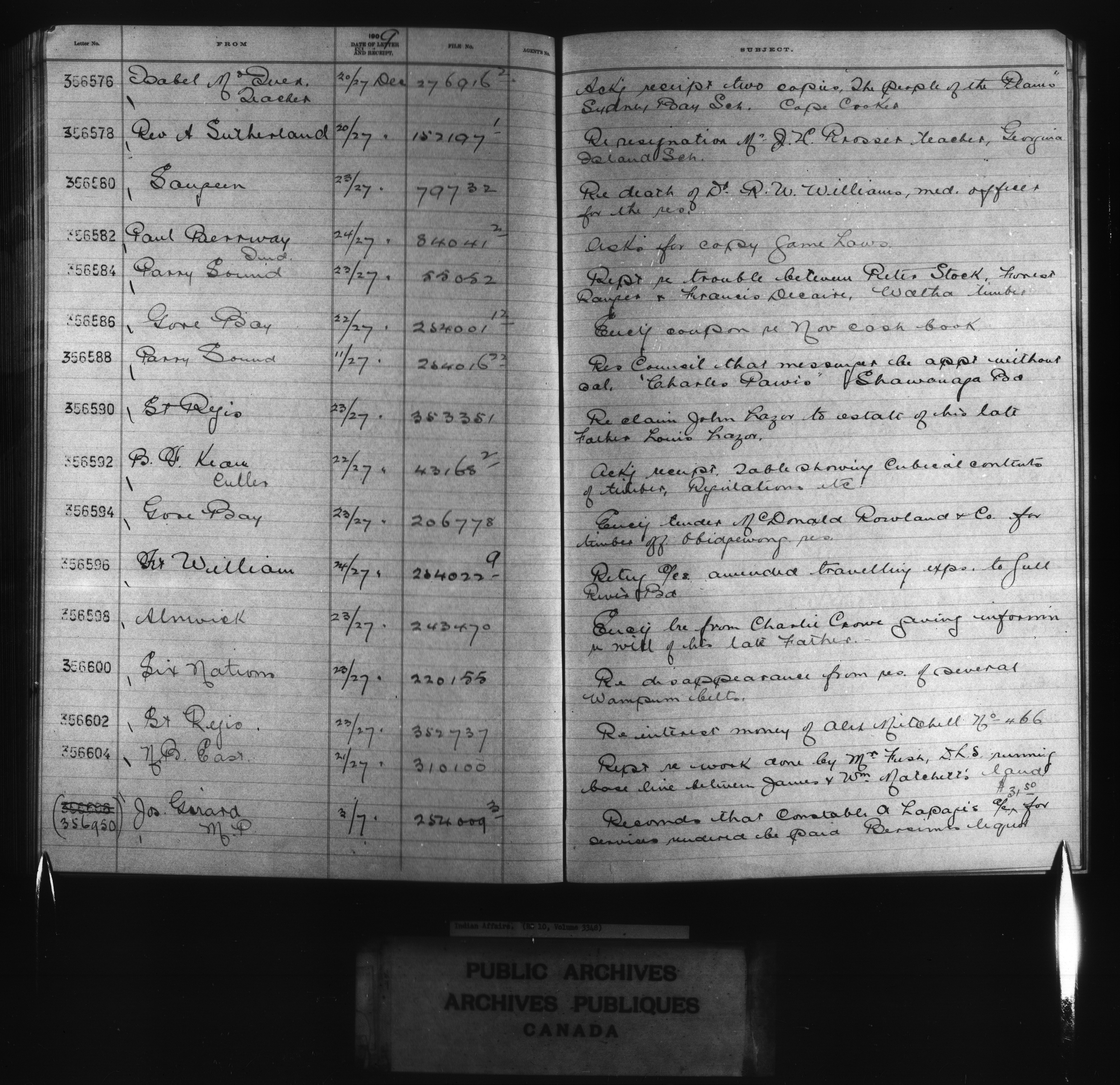 Department of Indian Affairs : Red Series register for Ontario and Quebec - 10747