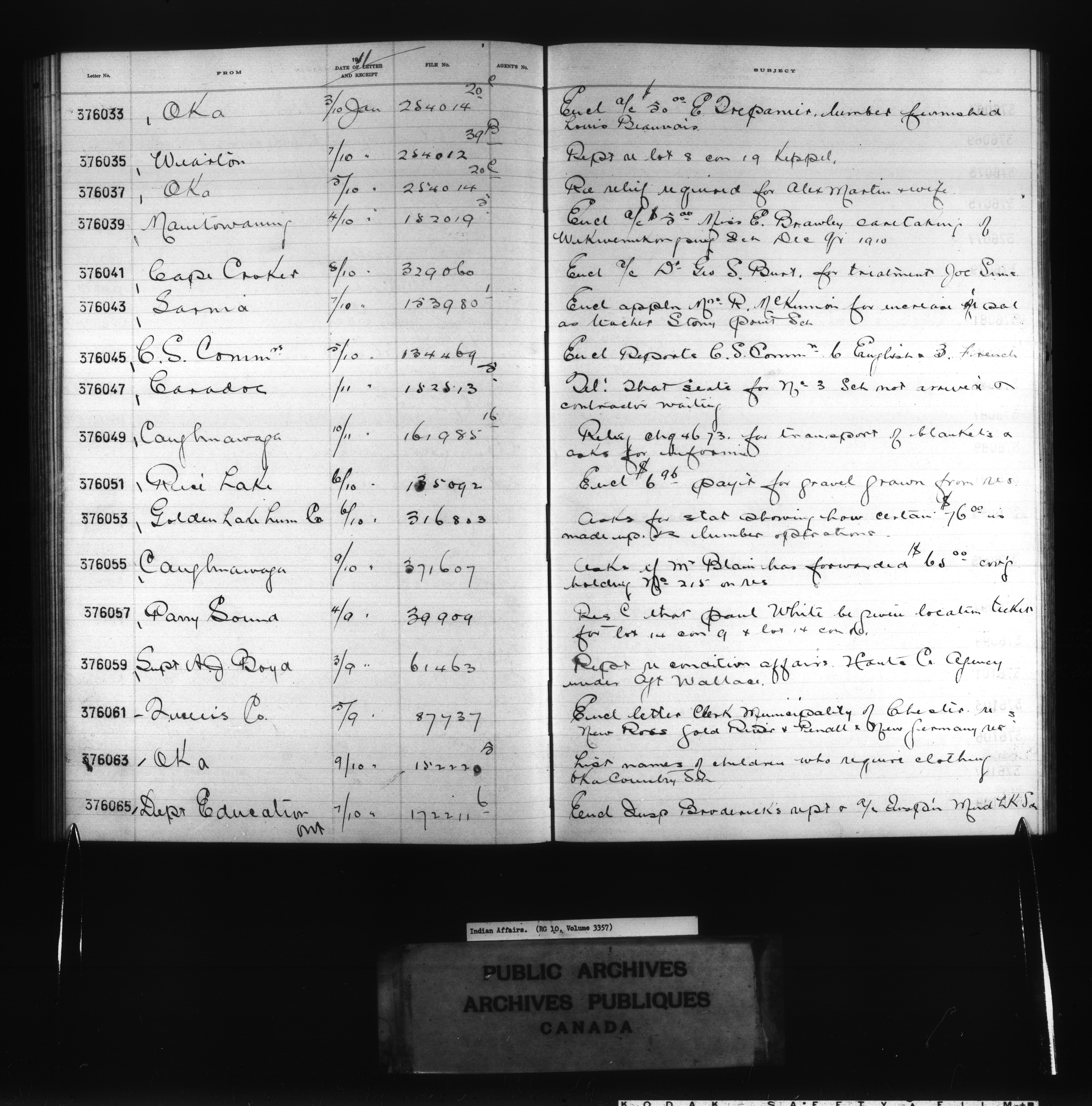 Department of Indian Affairs : Red Series register for Ontario and Quebec - 10749