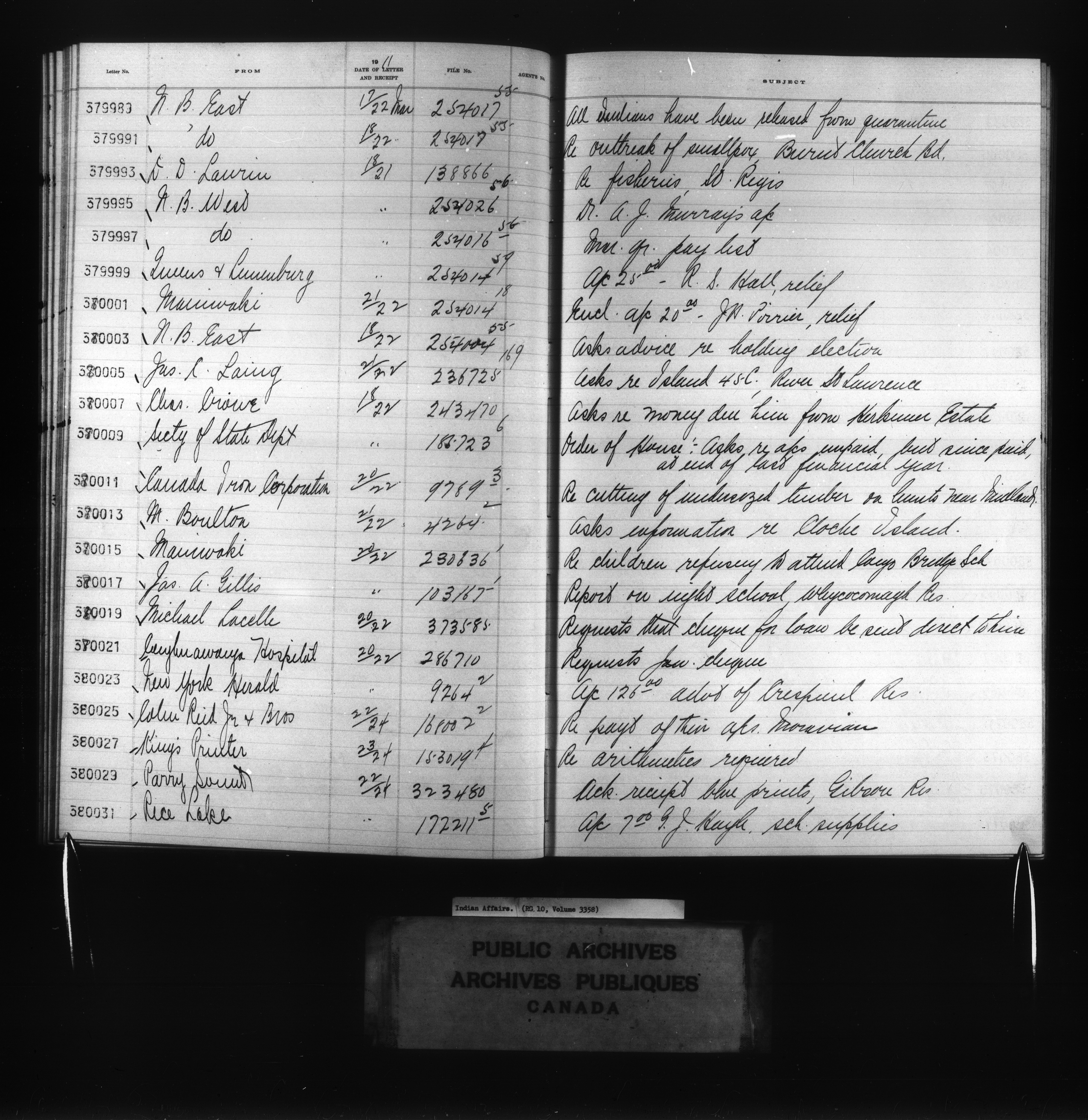 Department of Indian Affairs, Headquarters central registry system :registers, indices and indexed registers : C-10750