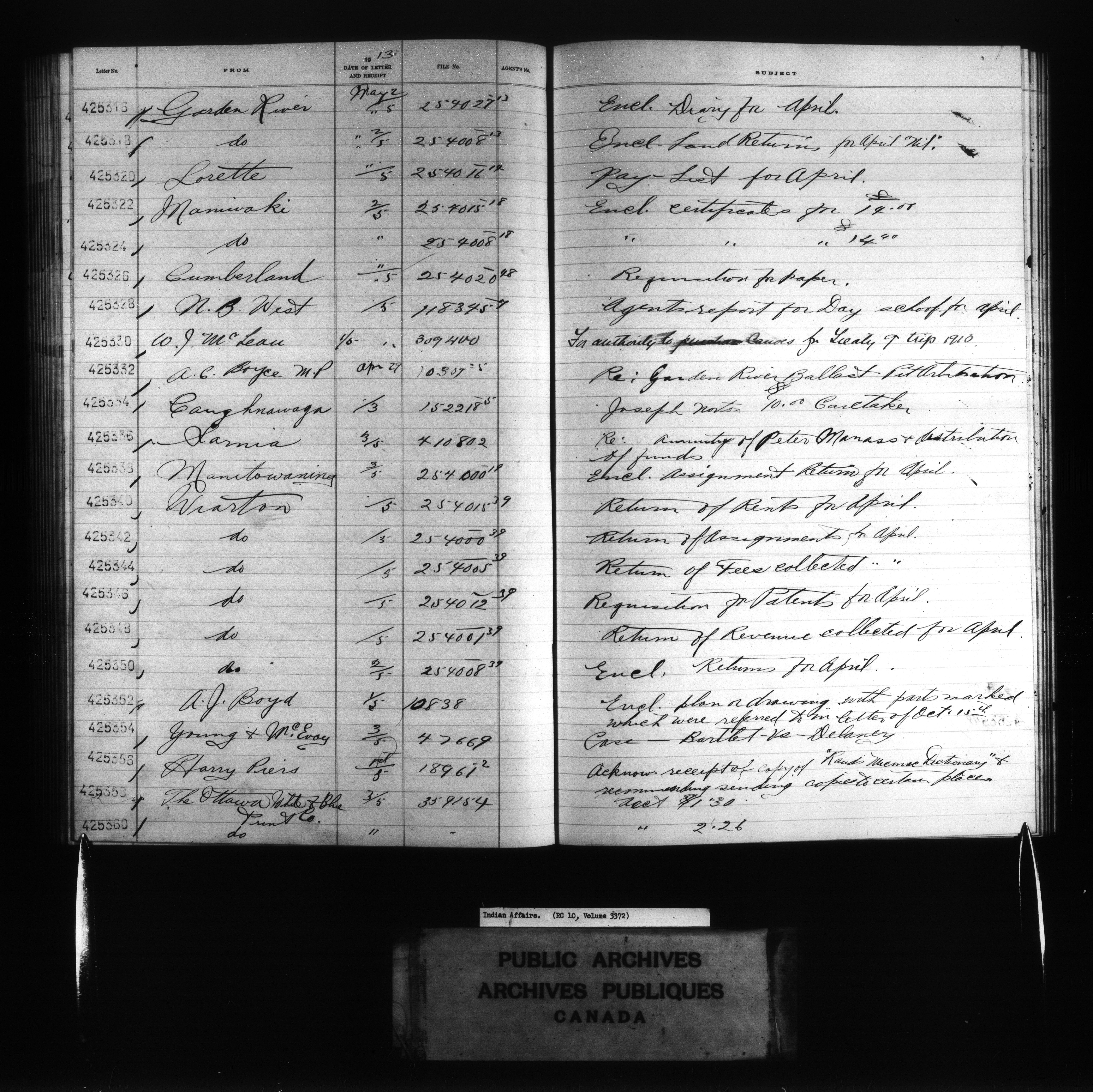 Department of Indian Affairs : Red Series register for Ontario and Quebec - 10752