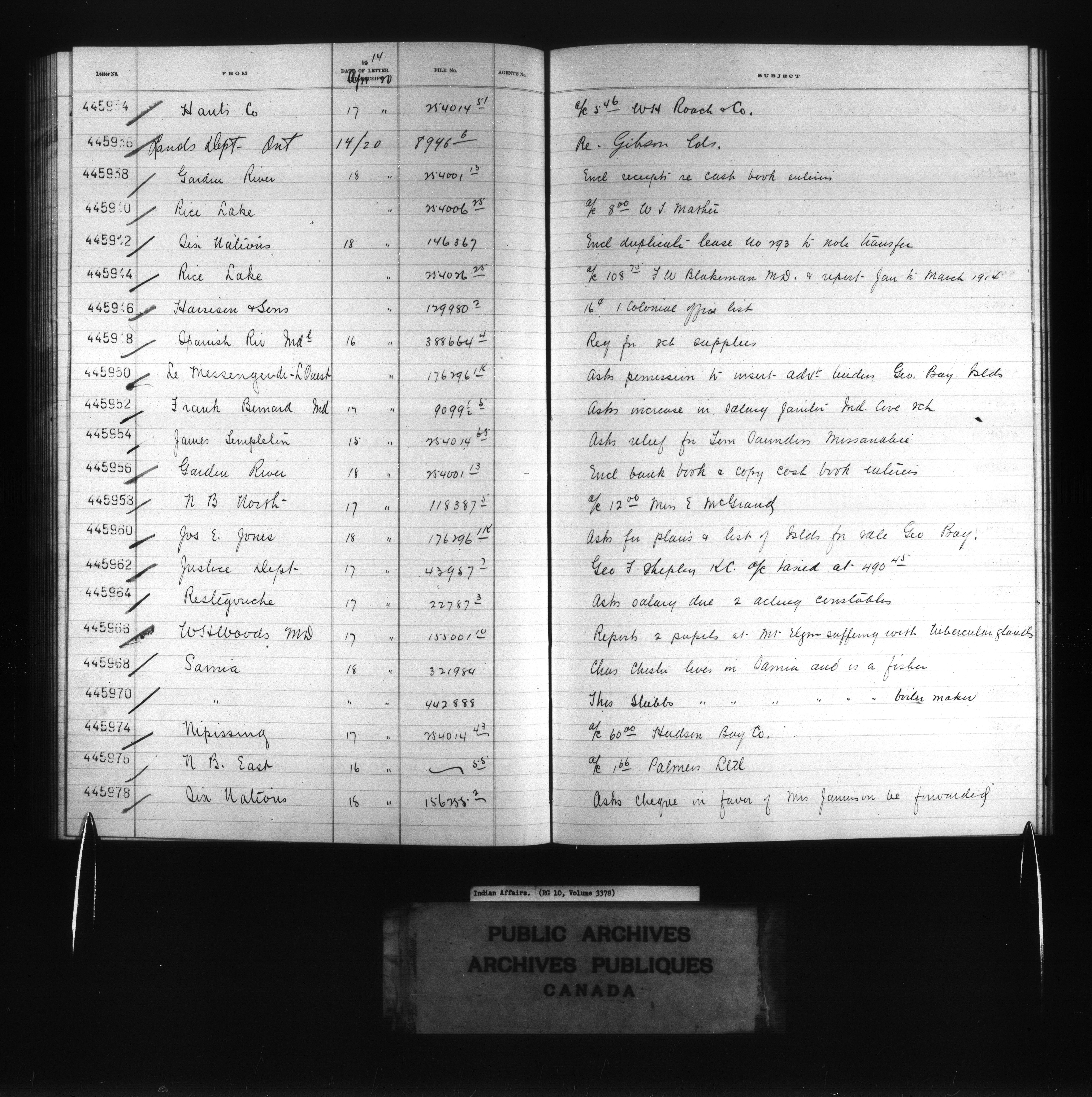 Department of Indian Affairs, Headquarters central registry system :registers, indices and indexed registers : C-10754