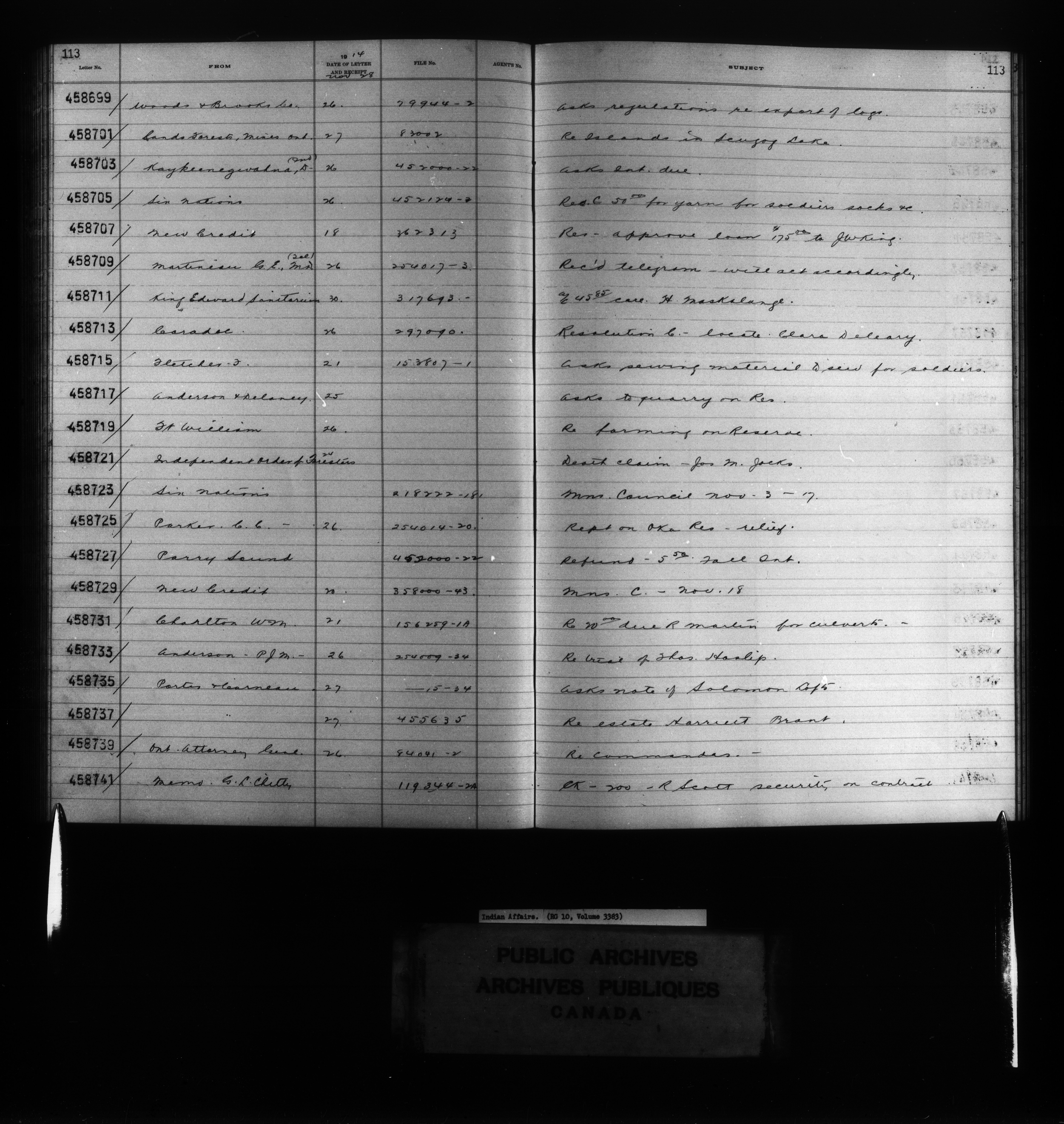 Department of Indian Affairs : Red Series register for Ontario and Quebec - 10755