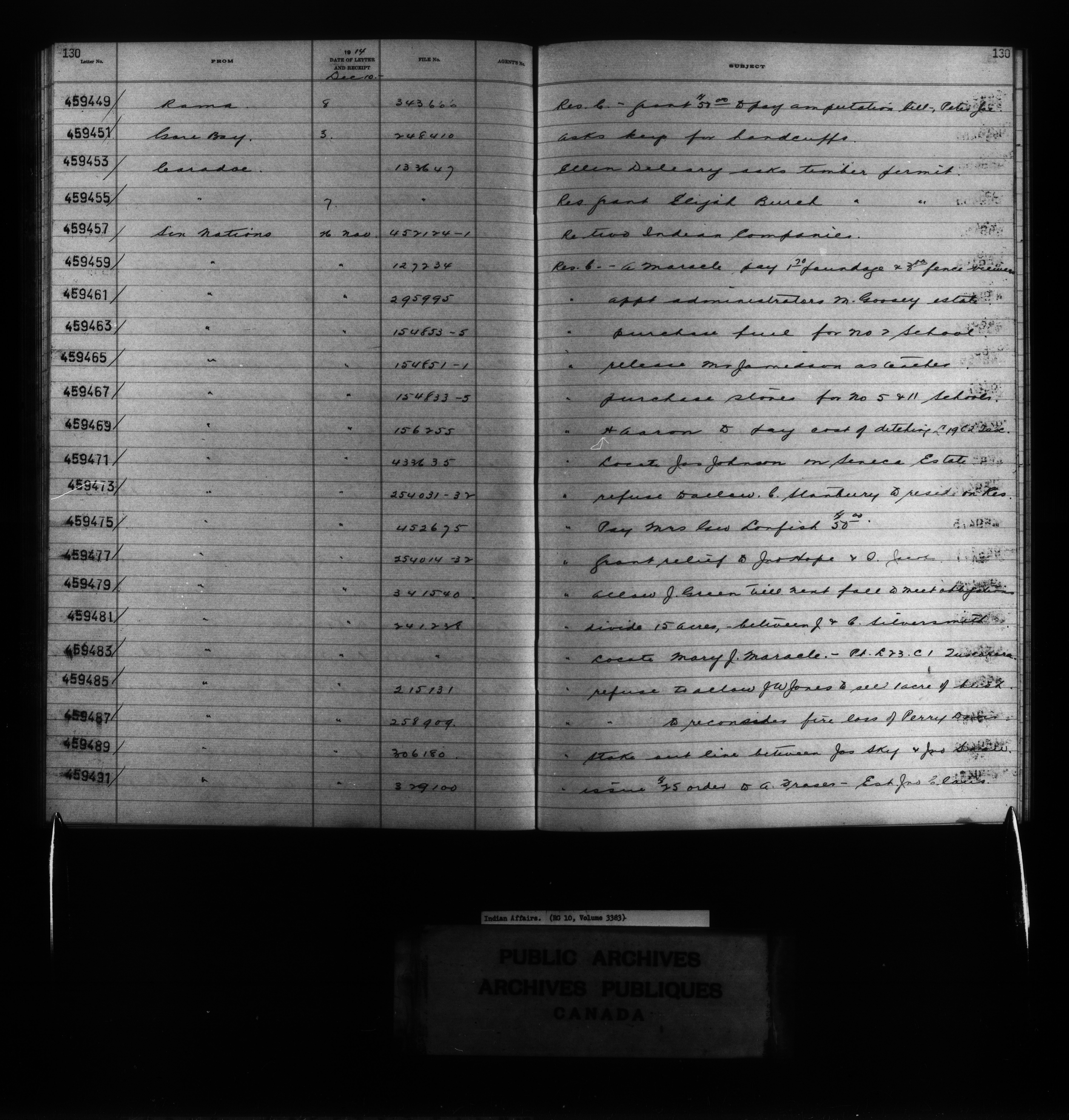 Department of Indian Affairs : Red Series register for Ontario and Quebec - 10755
