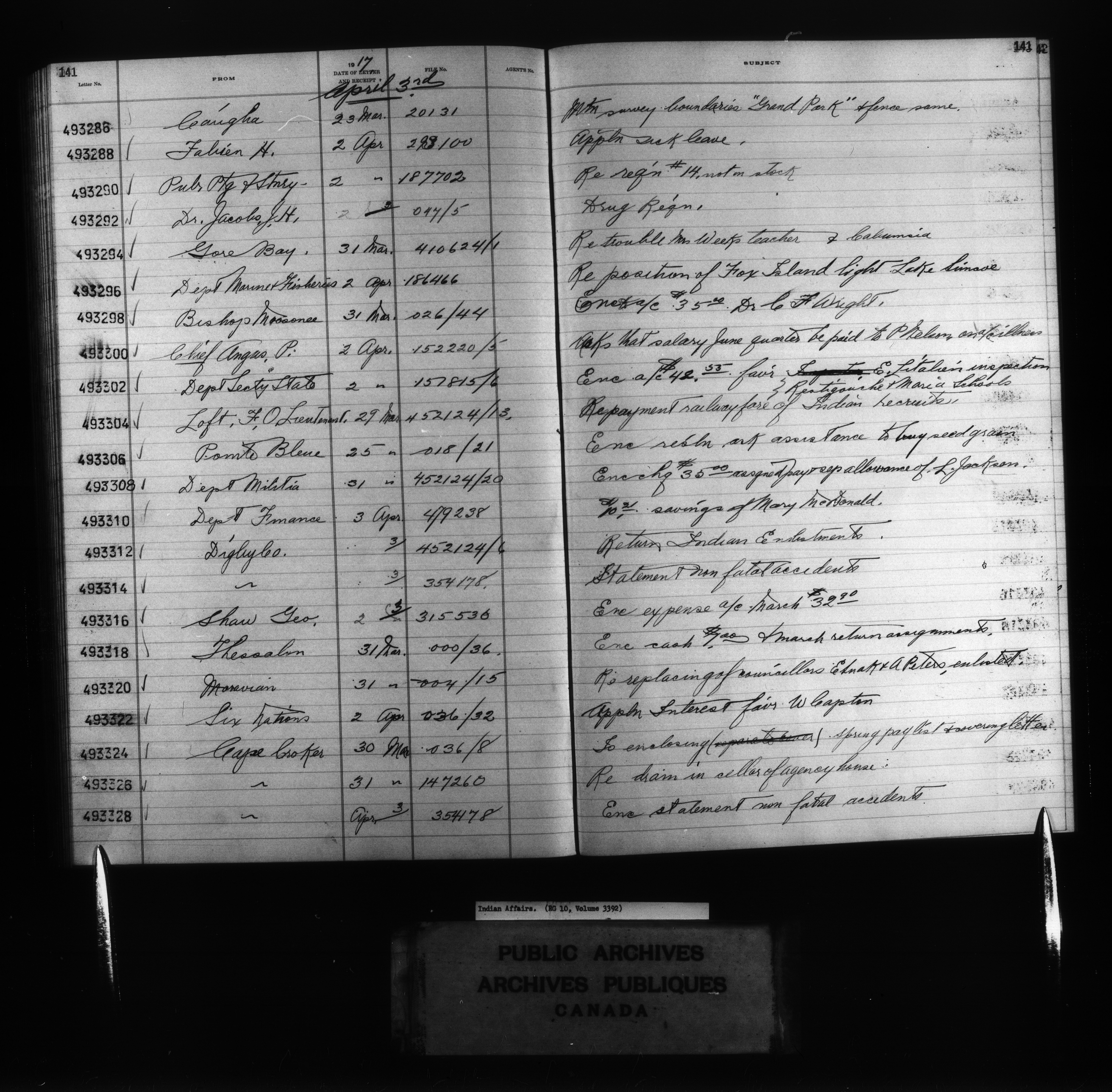 Department of Indian Affairs, Headquarters central registry system :registers, indices and indexed registers : C-10756