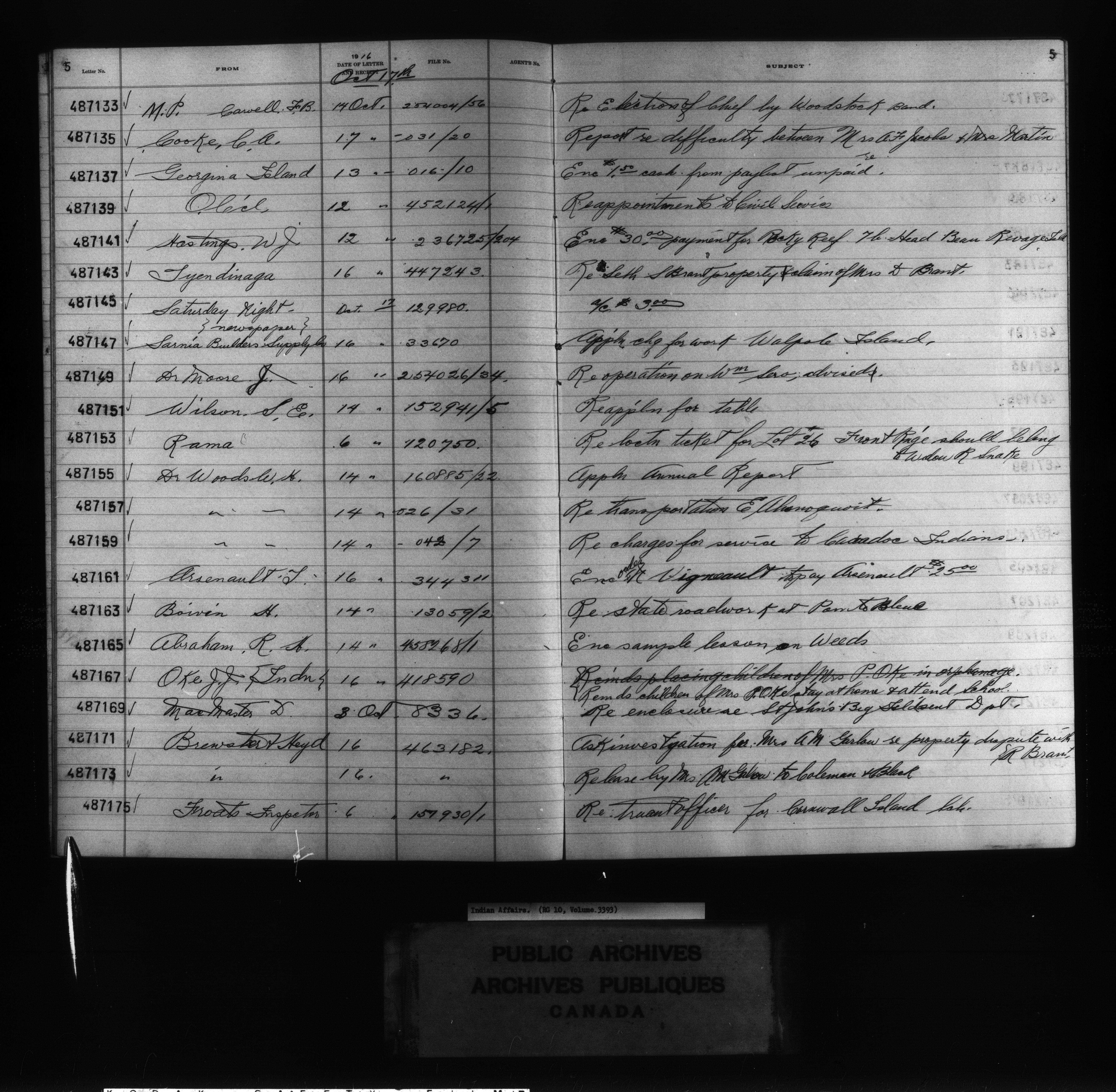 Department of Indian Affairs, Headquarters central registry system :registers, indices and indexed registers : C-10756