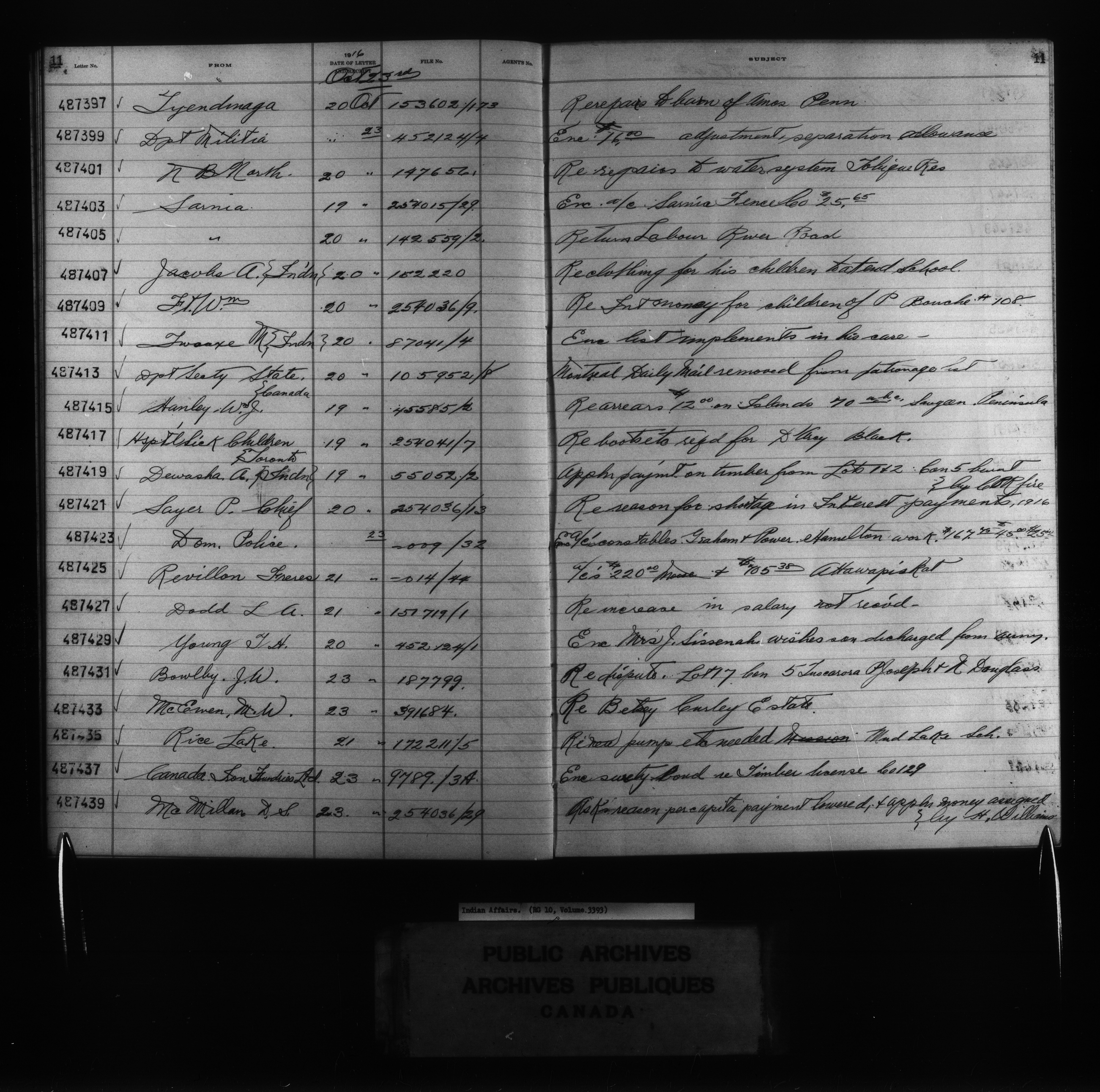 Department of Indian Affairs, Headquarters central registry system :registers, indices and indexed registers : C-10756