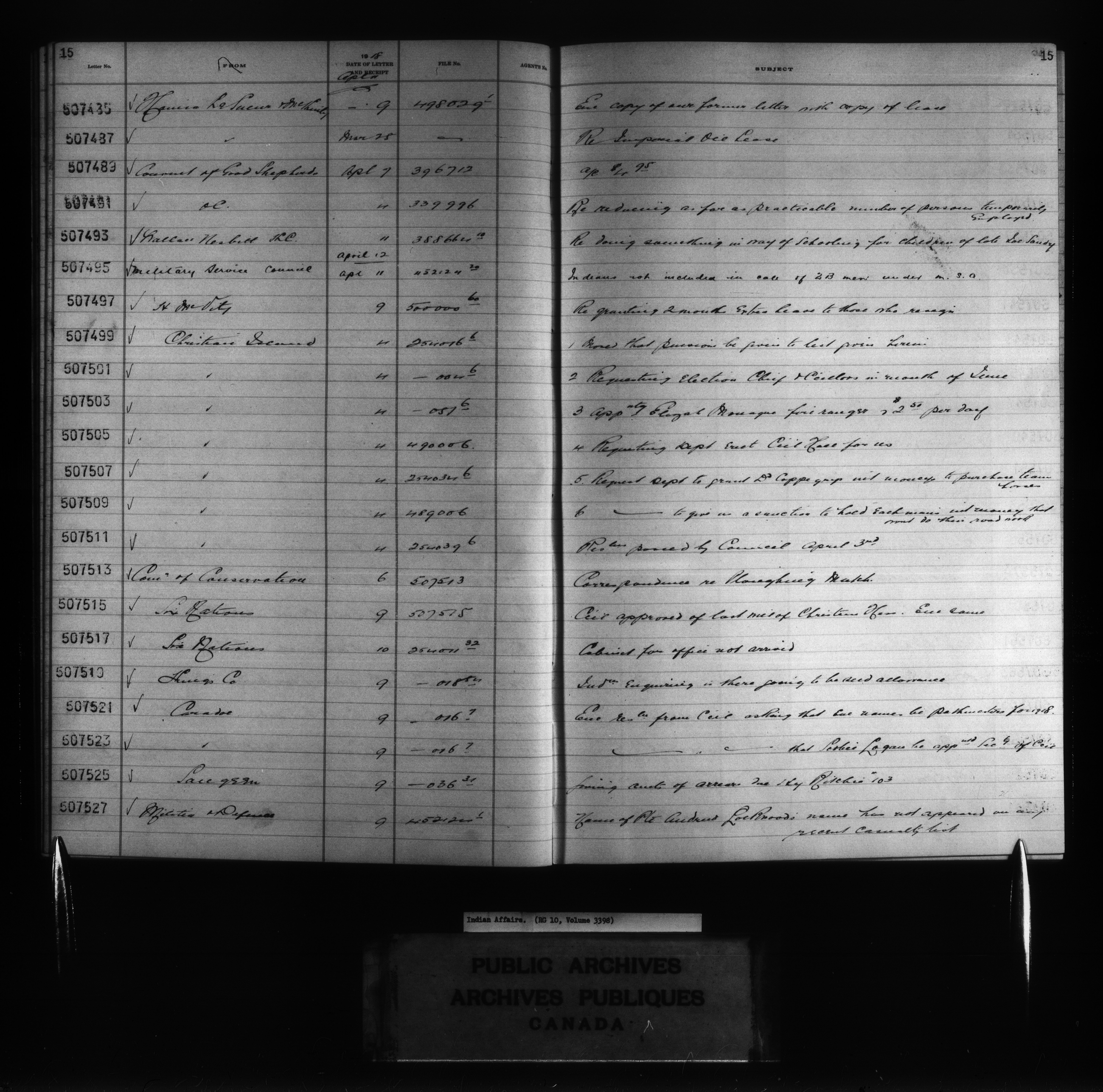 Department of Indian Affairs, Headquarters central registry system :registers, indices and indexed registers : C-10757