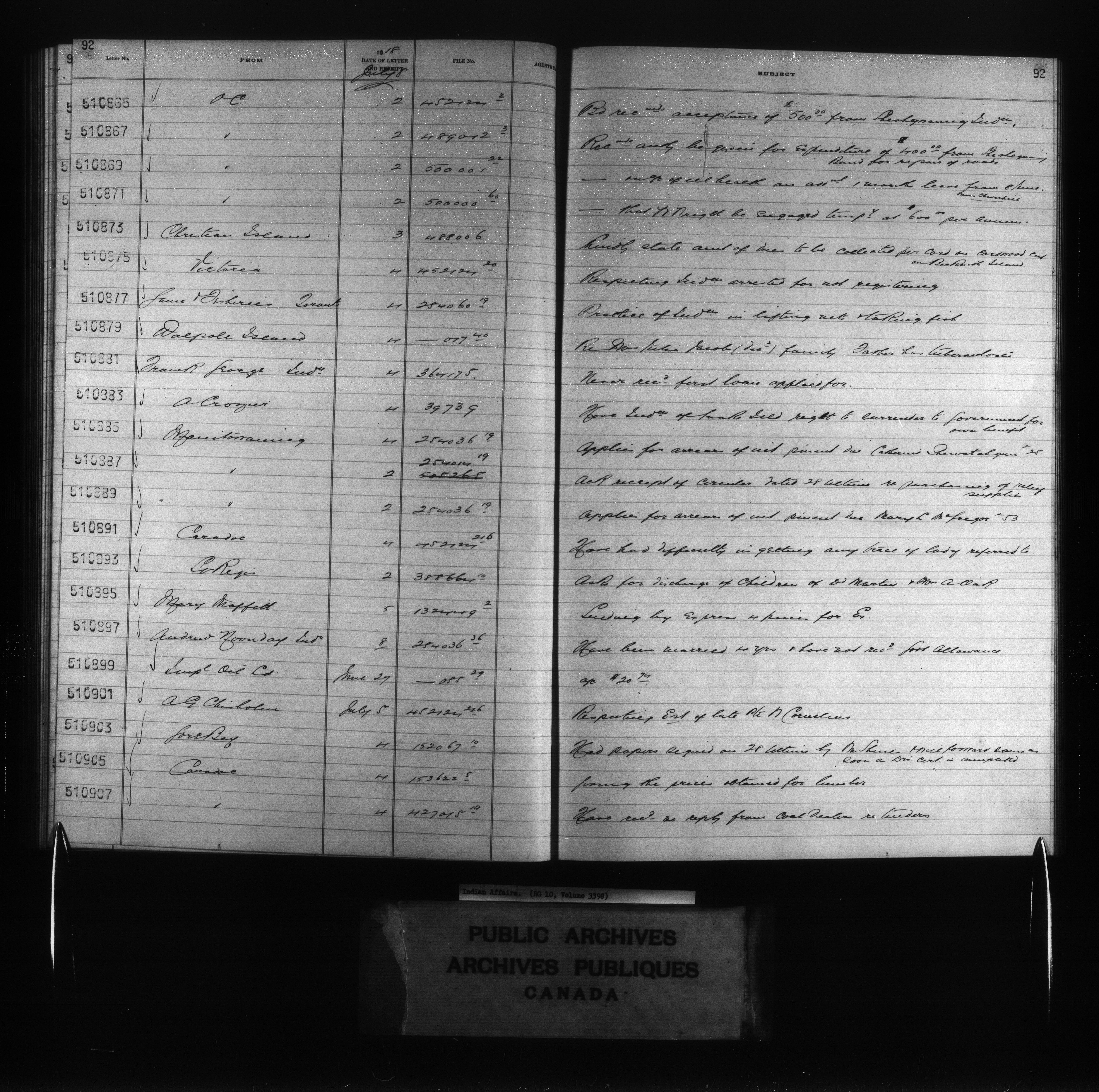 Department of Indian Affairs : Red Series register for Ontario and Quebec - 10758