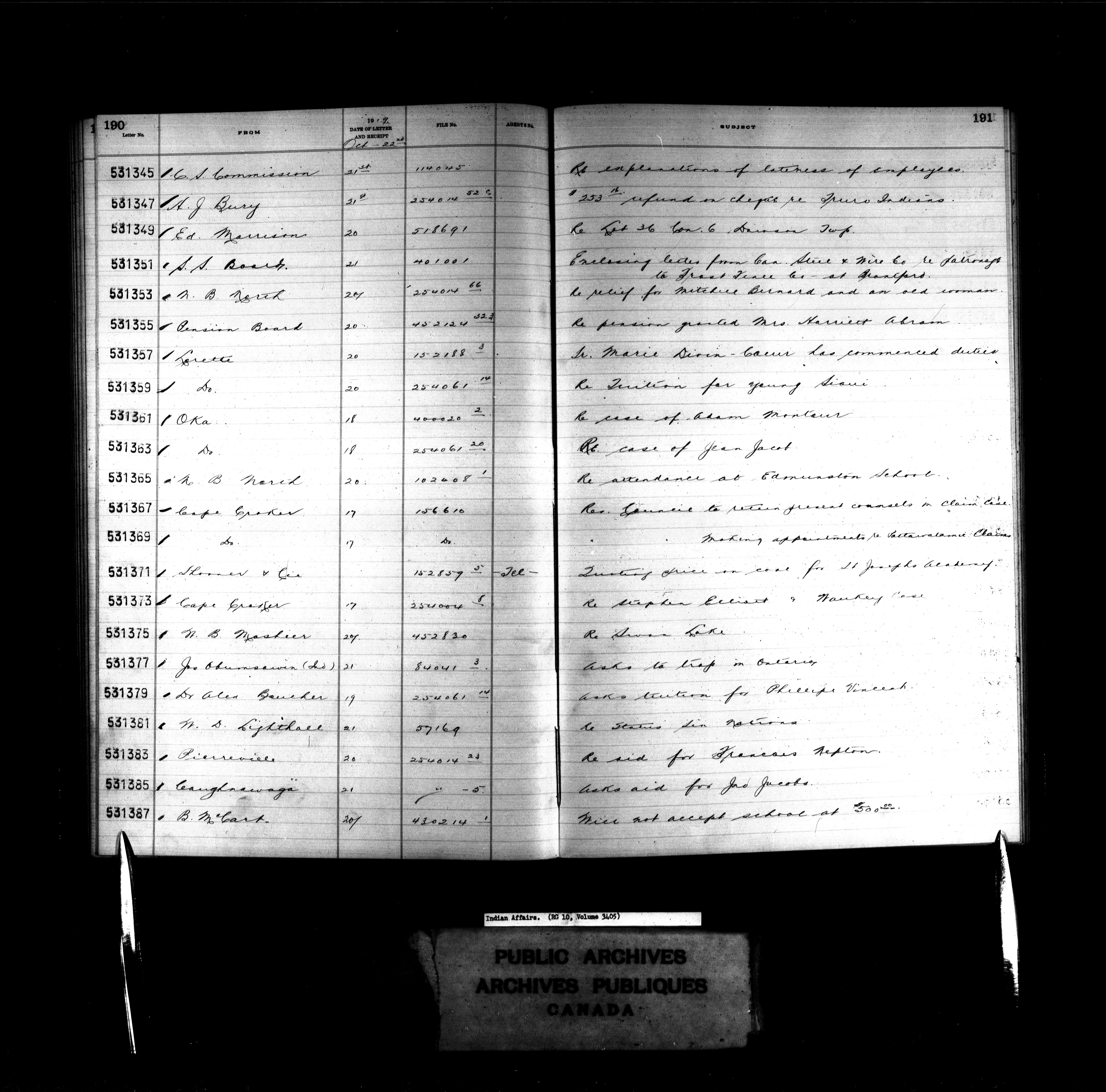 Department of Indian Affairs : Red Series register for Ontario, Quebec and Maritimes - C-10759