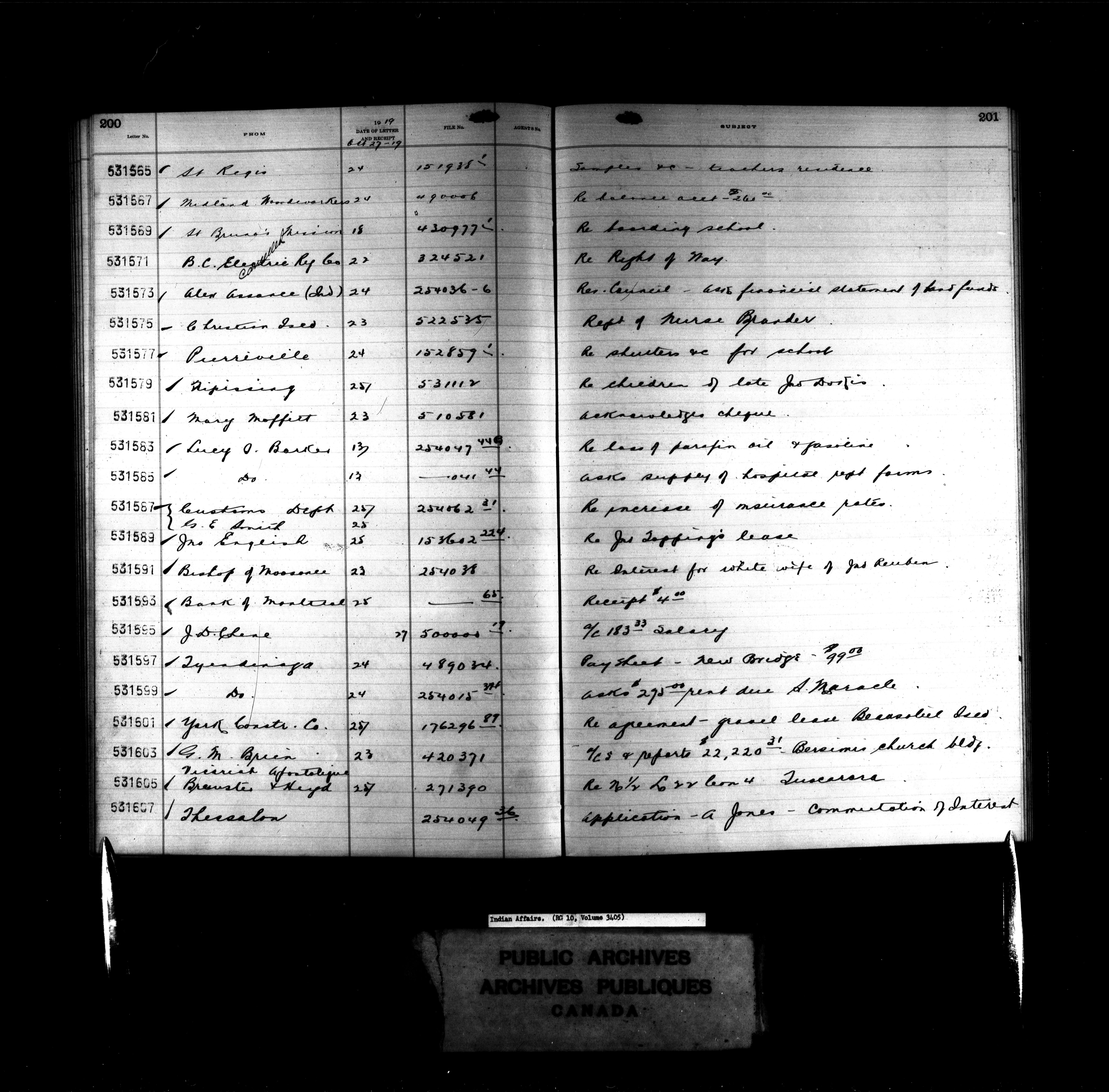Department of Indian Affairs : Red Series register for Ontario, Quebec and Maritimes - C-10759