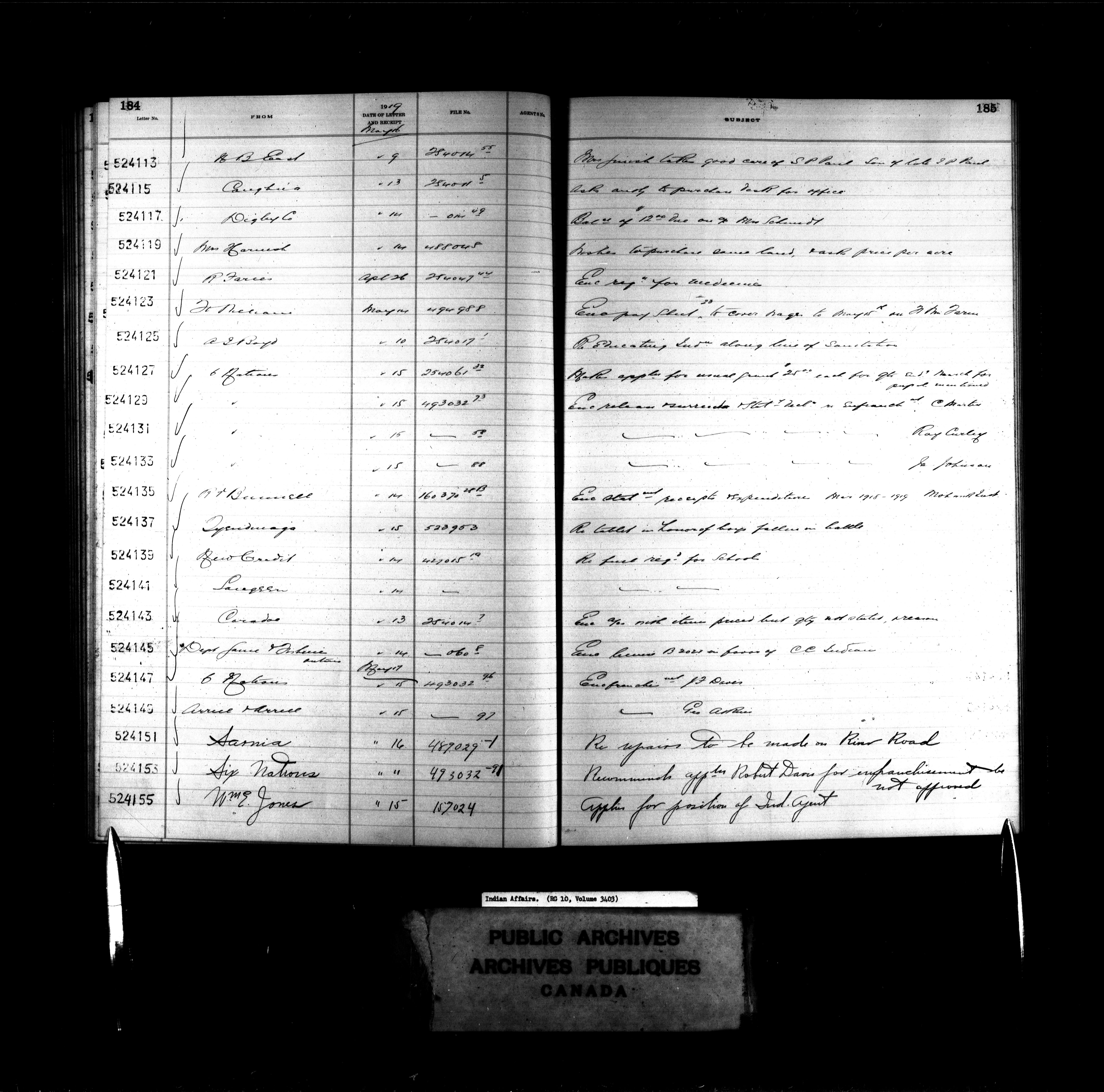 Department of Indian Affairs, Headquarters central registry system :registers, indices and indexed registers : C-10759