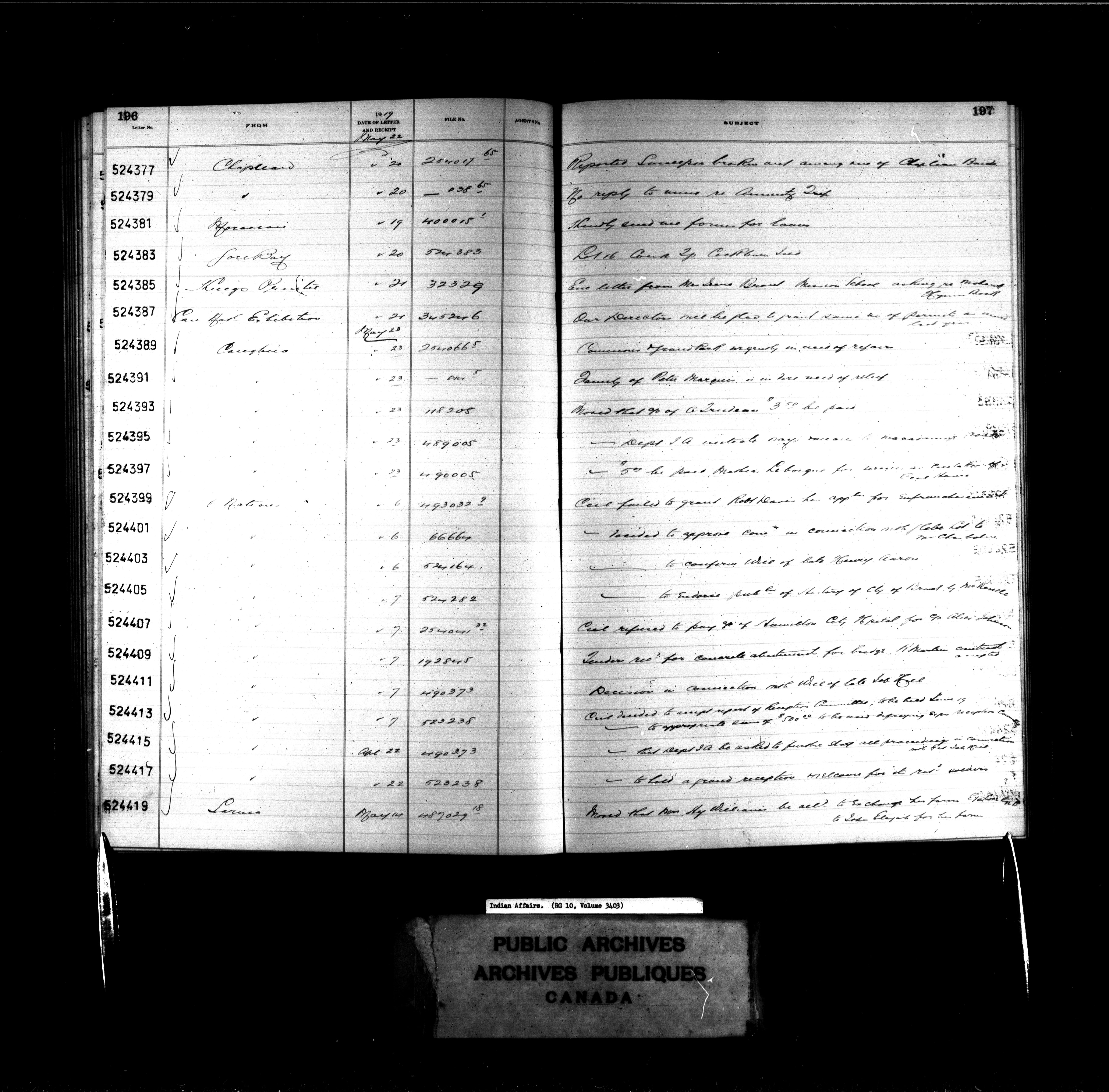 Department of Indian Affairs, Headquarters central registry system :registers, indices and indexed registers : C-10759
