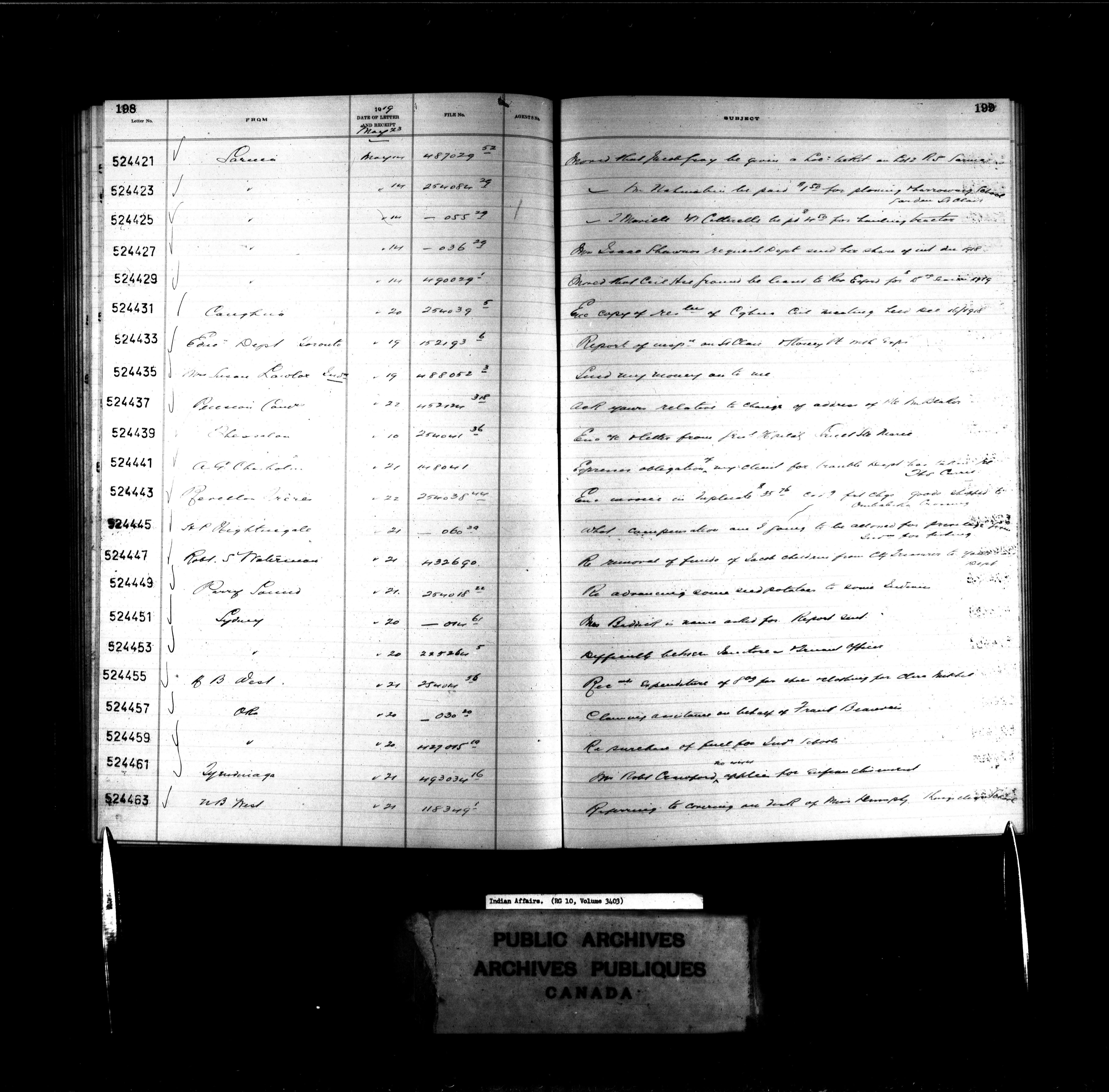 Department of Indian Affairs, Headquarters central registry system :registers, indices and indexed registers : C-10759