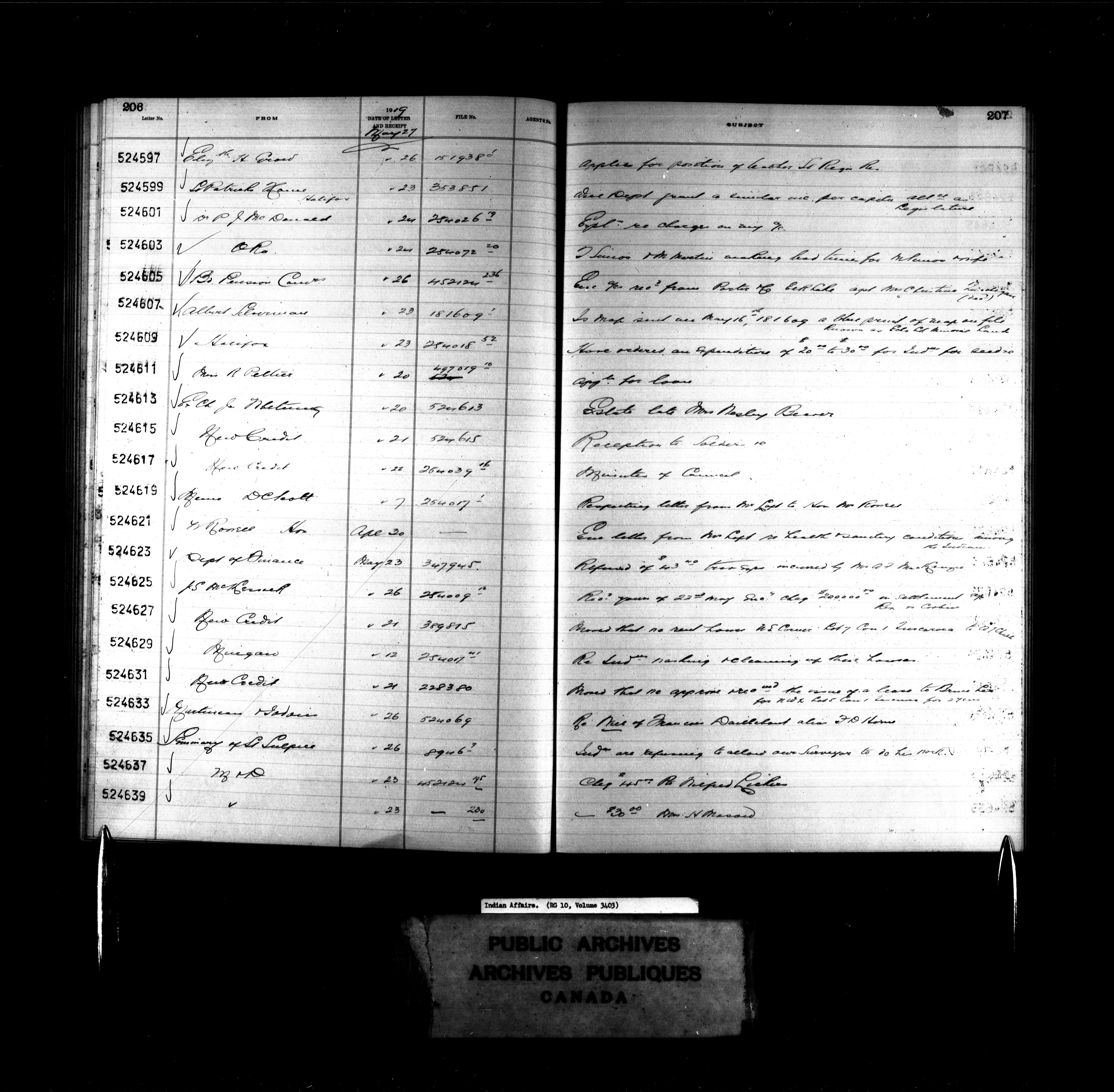 Department of Indian Affairs, Headquarters central registry system :registers, indices and indexed registers : C-10759
