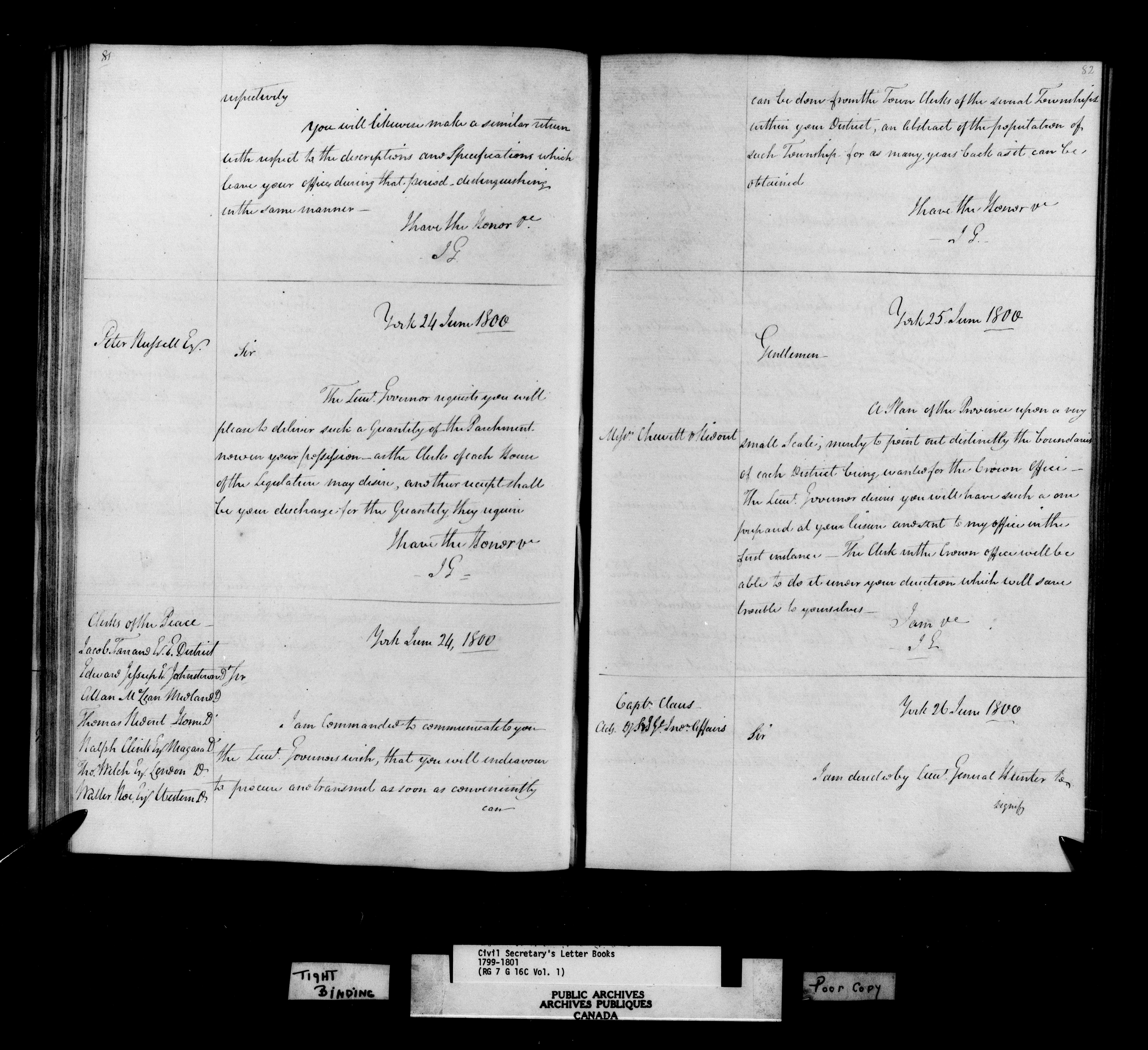 Canada, Governor General's Office, Civil Secretary's Letterbooks, Upper Canada - C-10788