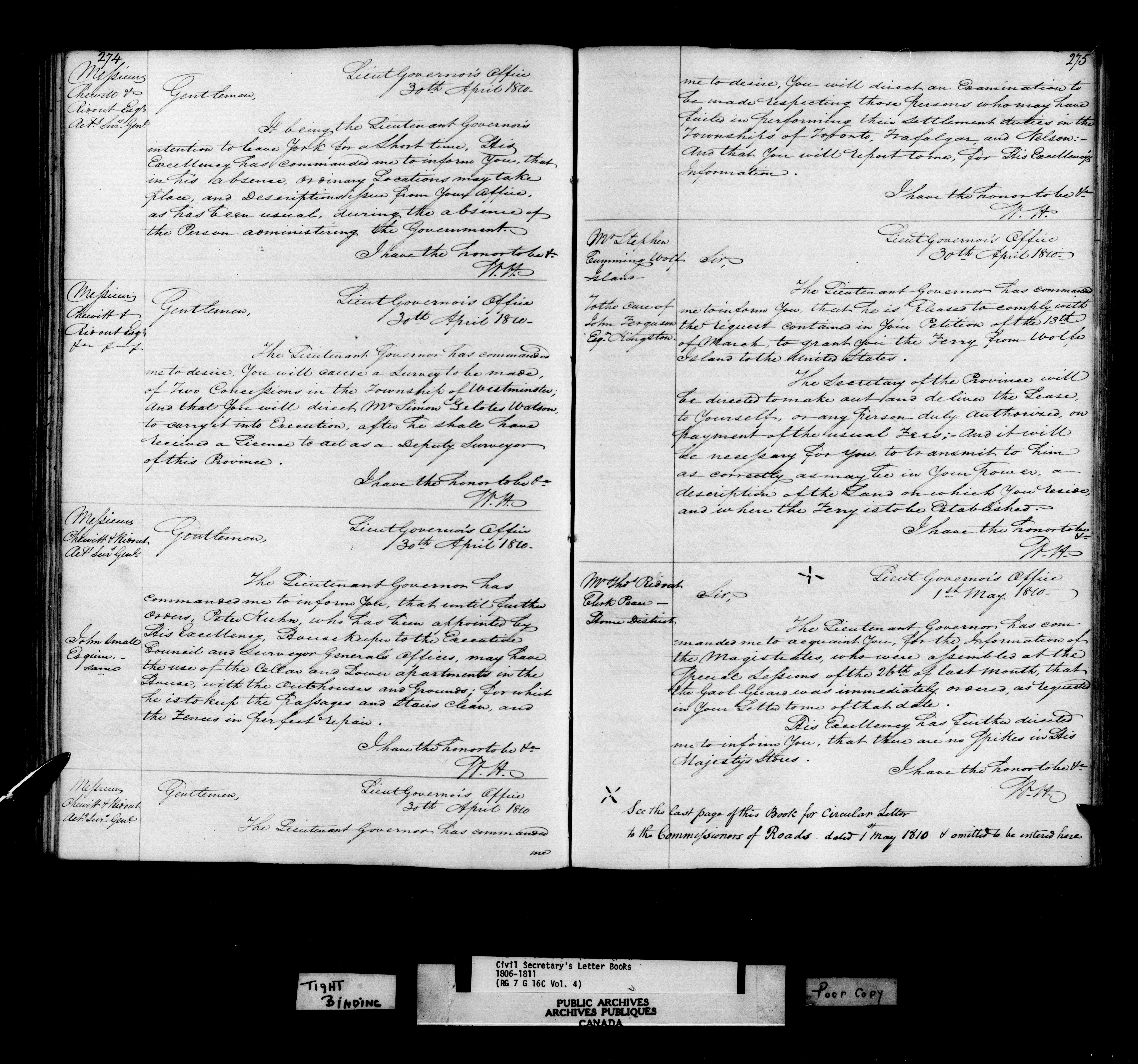 Canada, Governor General's Office, Civil Secretary's Letterbooks, Upper Canada - C-10788