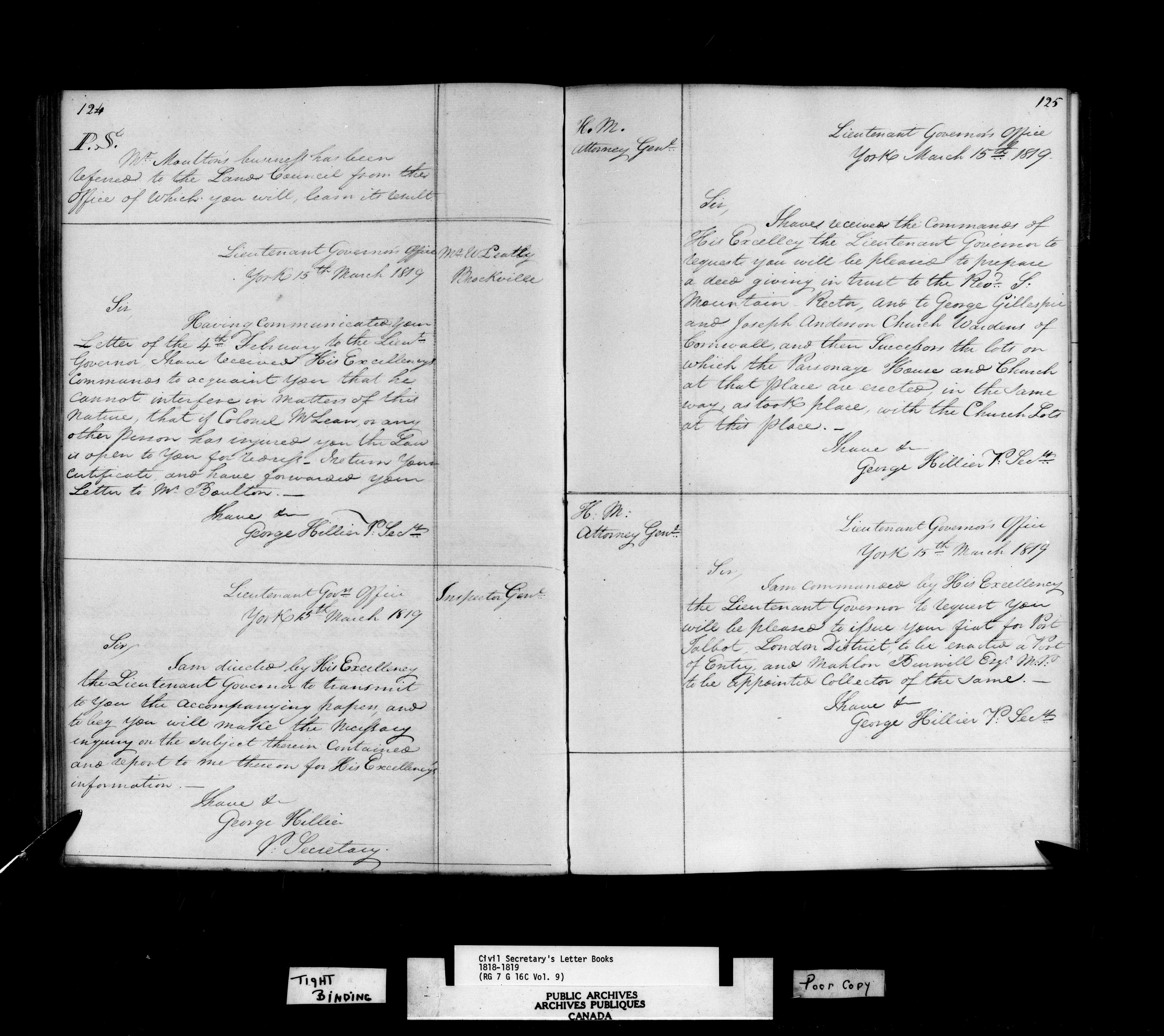 Canada, Governor General's Office, Civil Secretary's Letterbooks, Upper Canada - C-10789