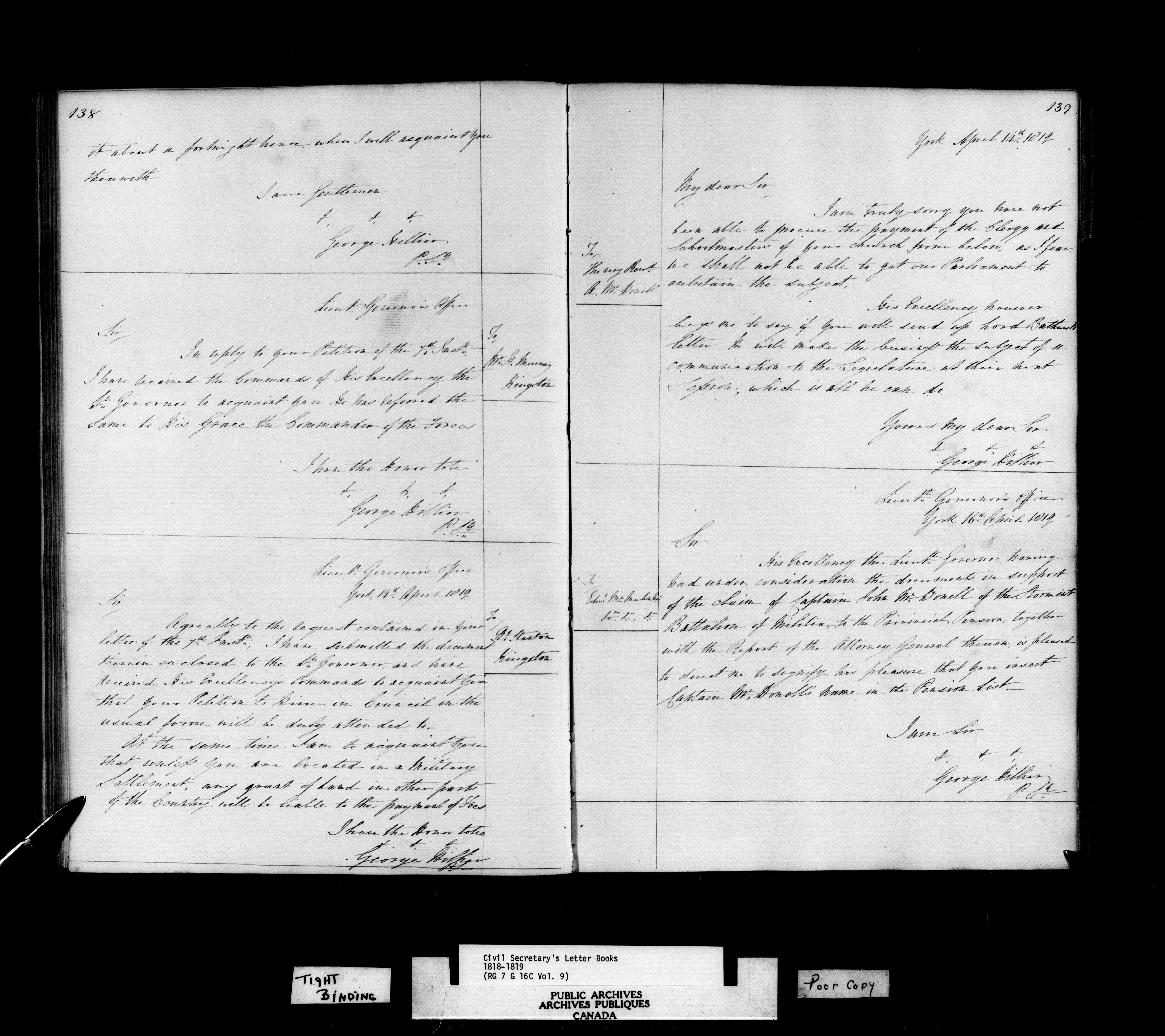 Canada, Governor General's Office, Civil Secretary's Letterbooks, Upper Canada - C-10789