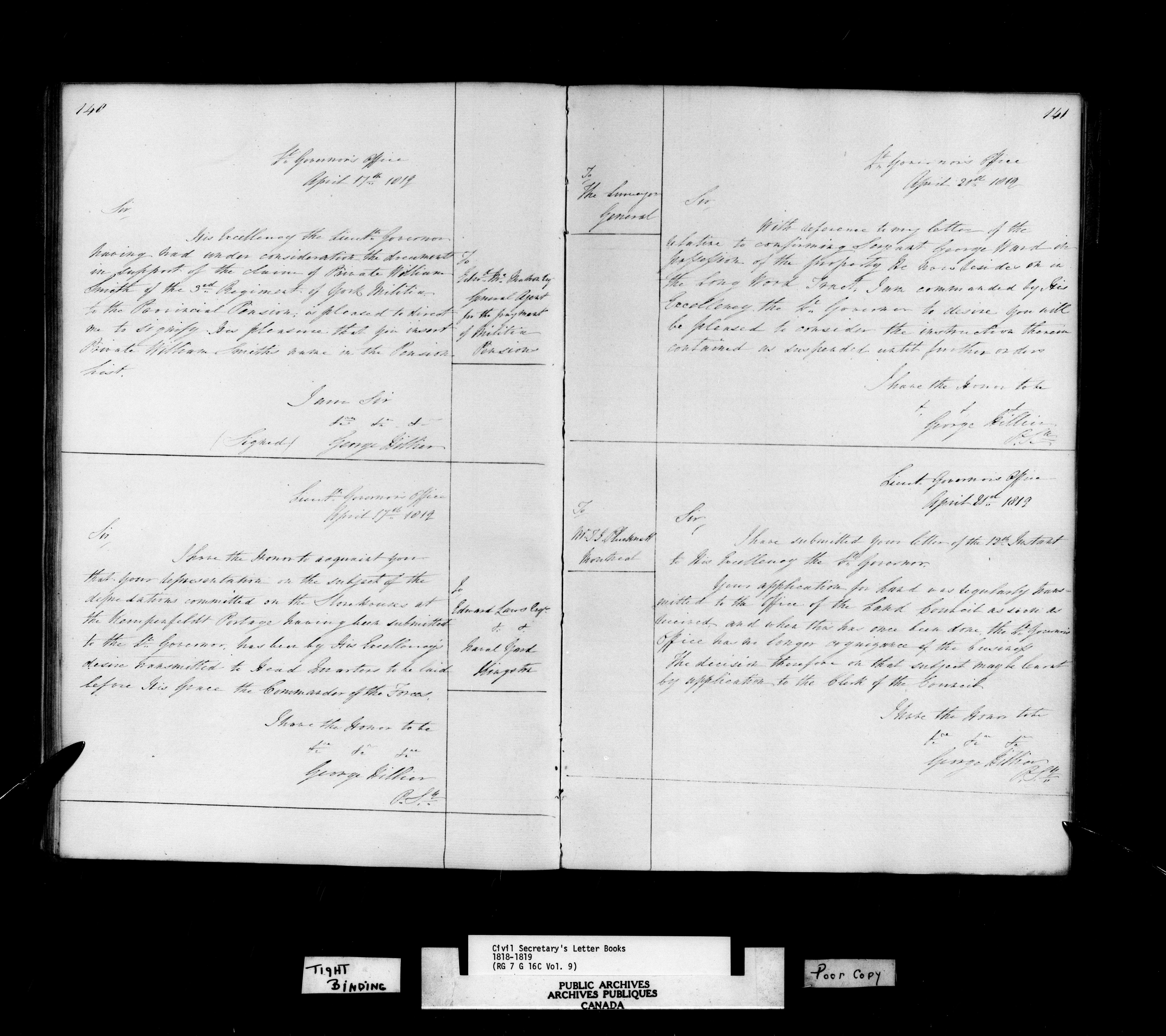 Canada, Governor General's Office, Civil Secretary's Letterbooks, Upper Canada - C-10789