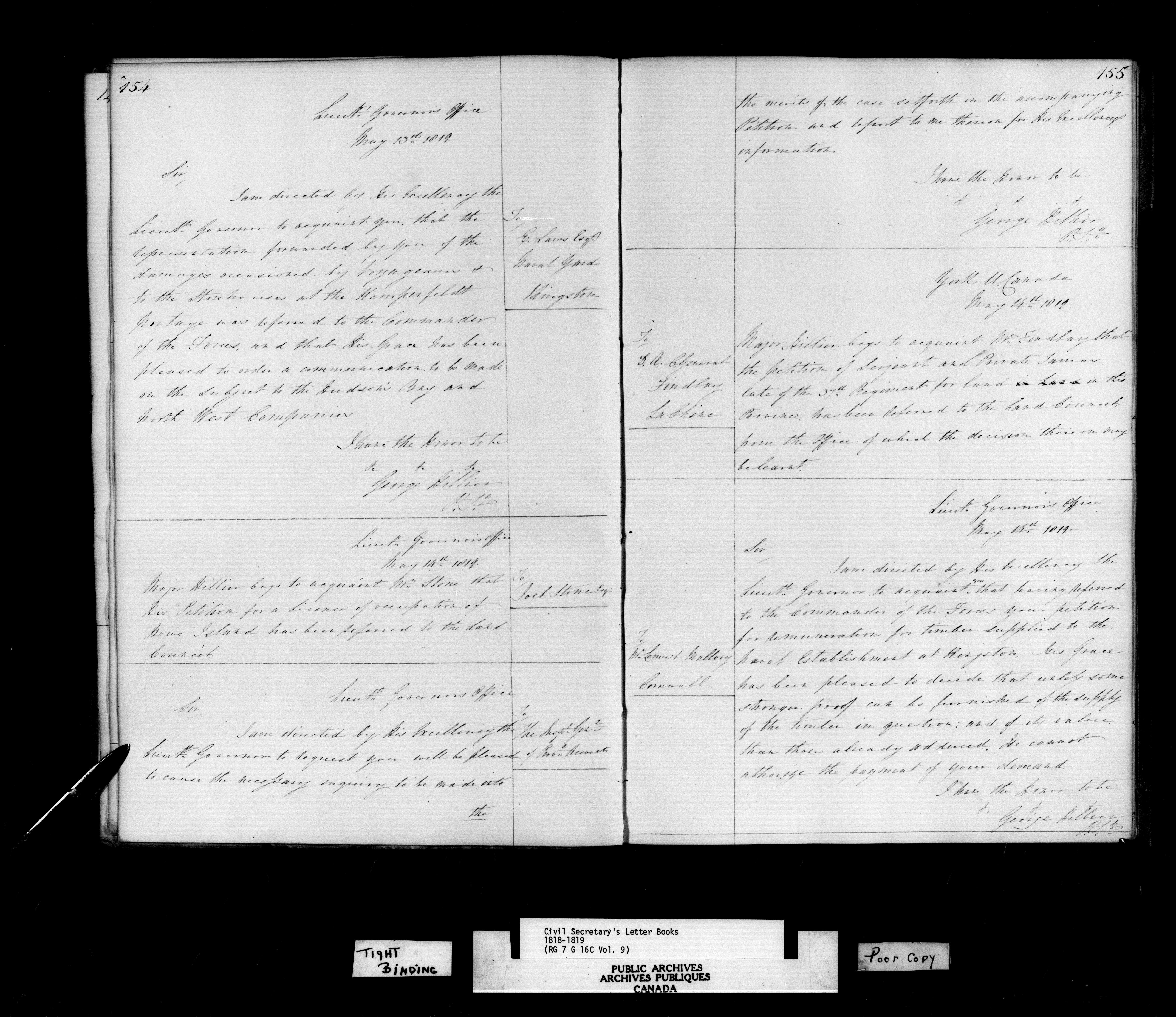 Canada, Governor General's Office, Civil Secretary's Letterbooks, Upper Canada - C-10789