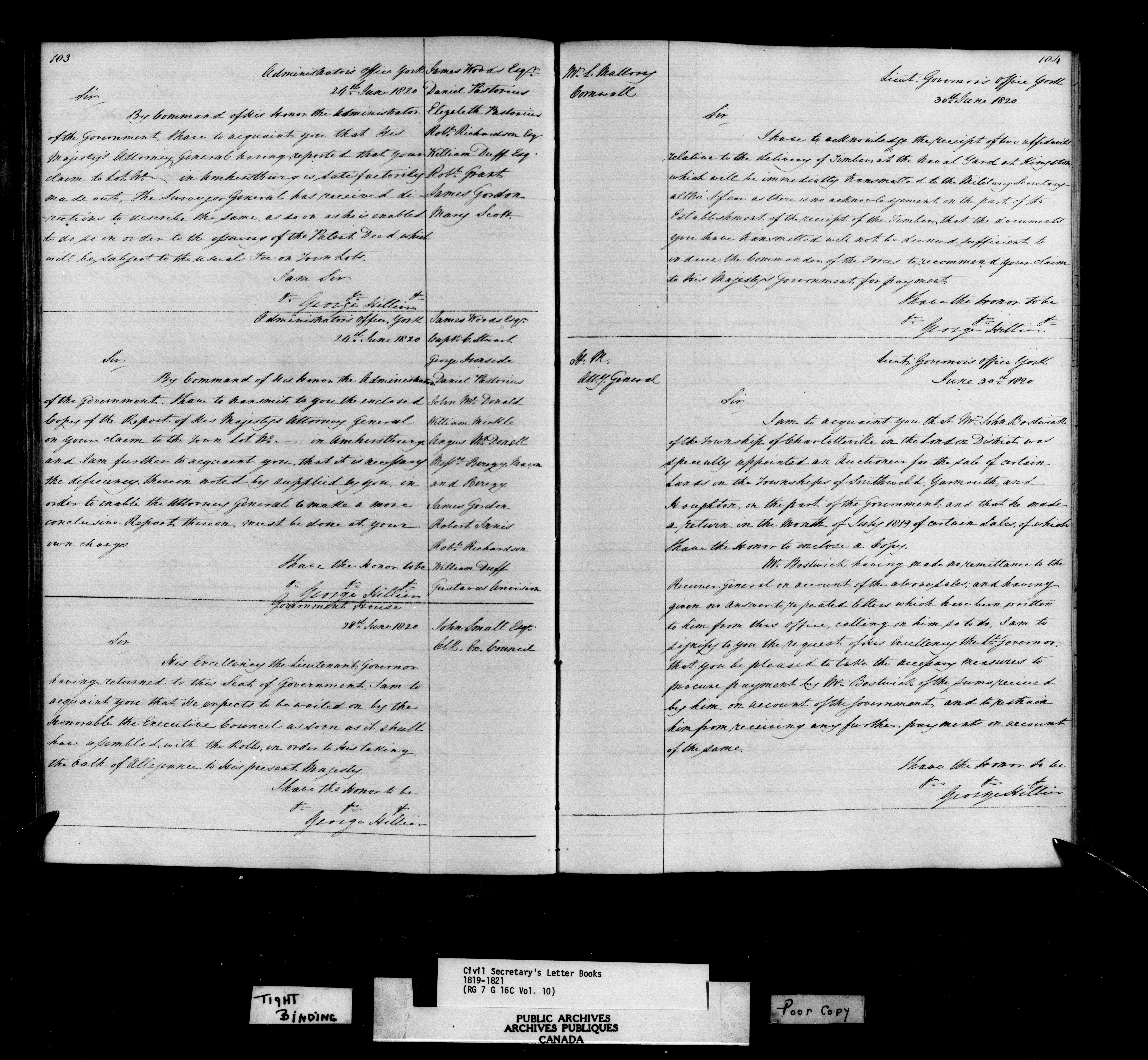 Canada, Governor General's Office, Civil Secretary's Letterbooks, Upper Canada - C-10790