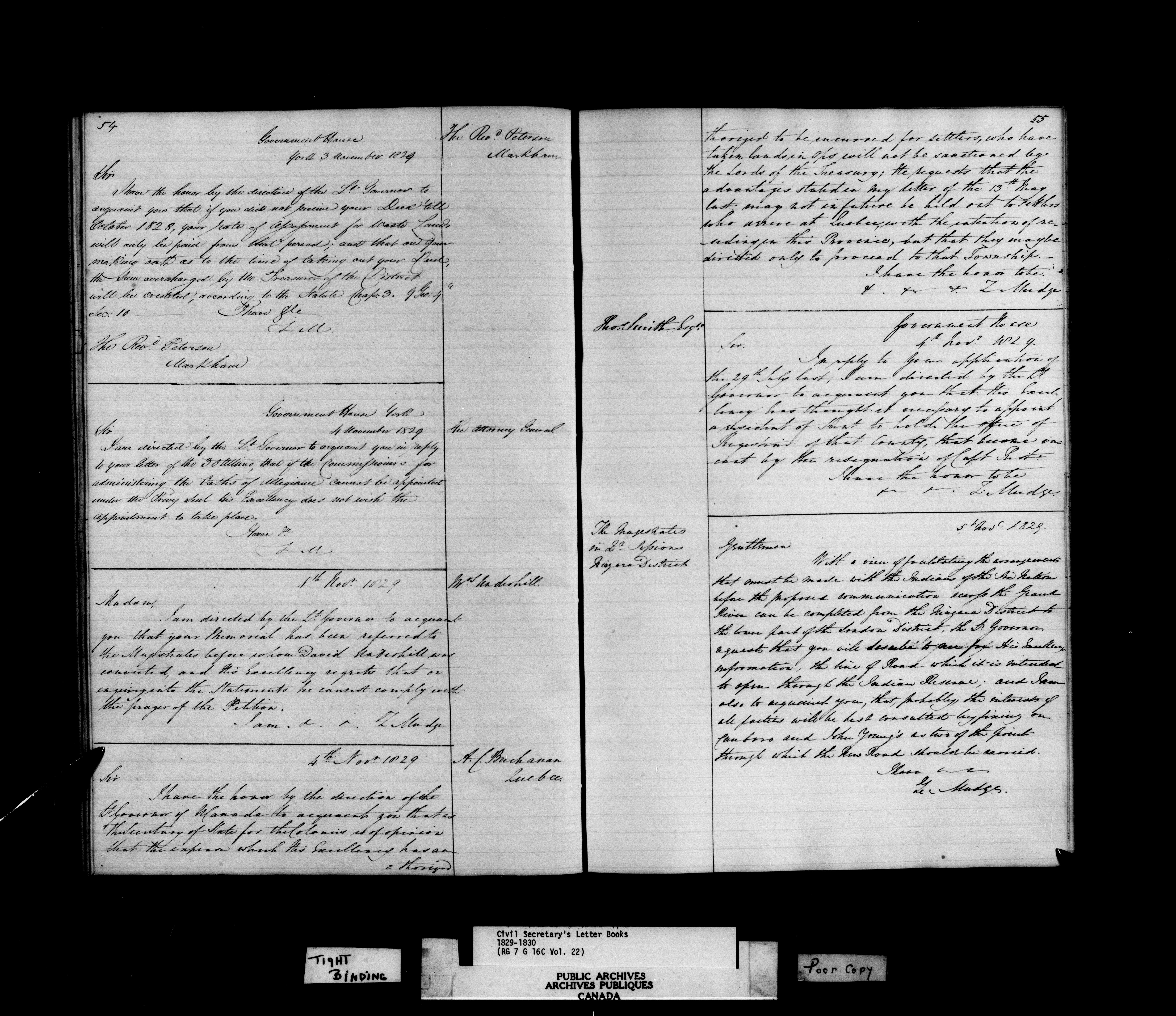 Canada, Governor General's Office, Civil Secretary's Letterbooks, Upper Canada - C-10791