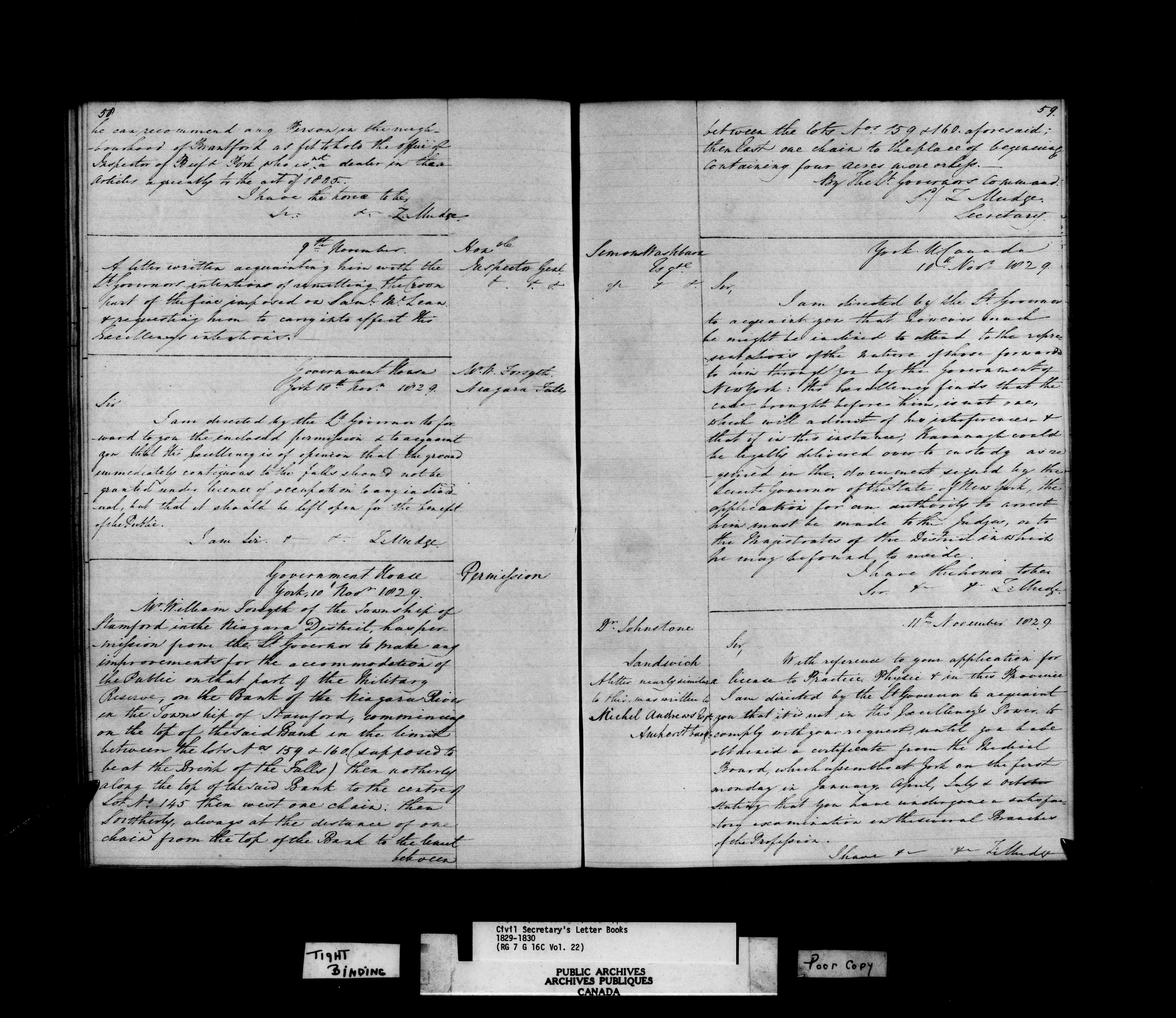 Canada, Governor General's Office, Civil Secretary's Letterbooks, Upper Canada - C-10791