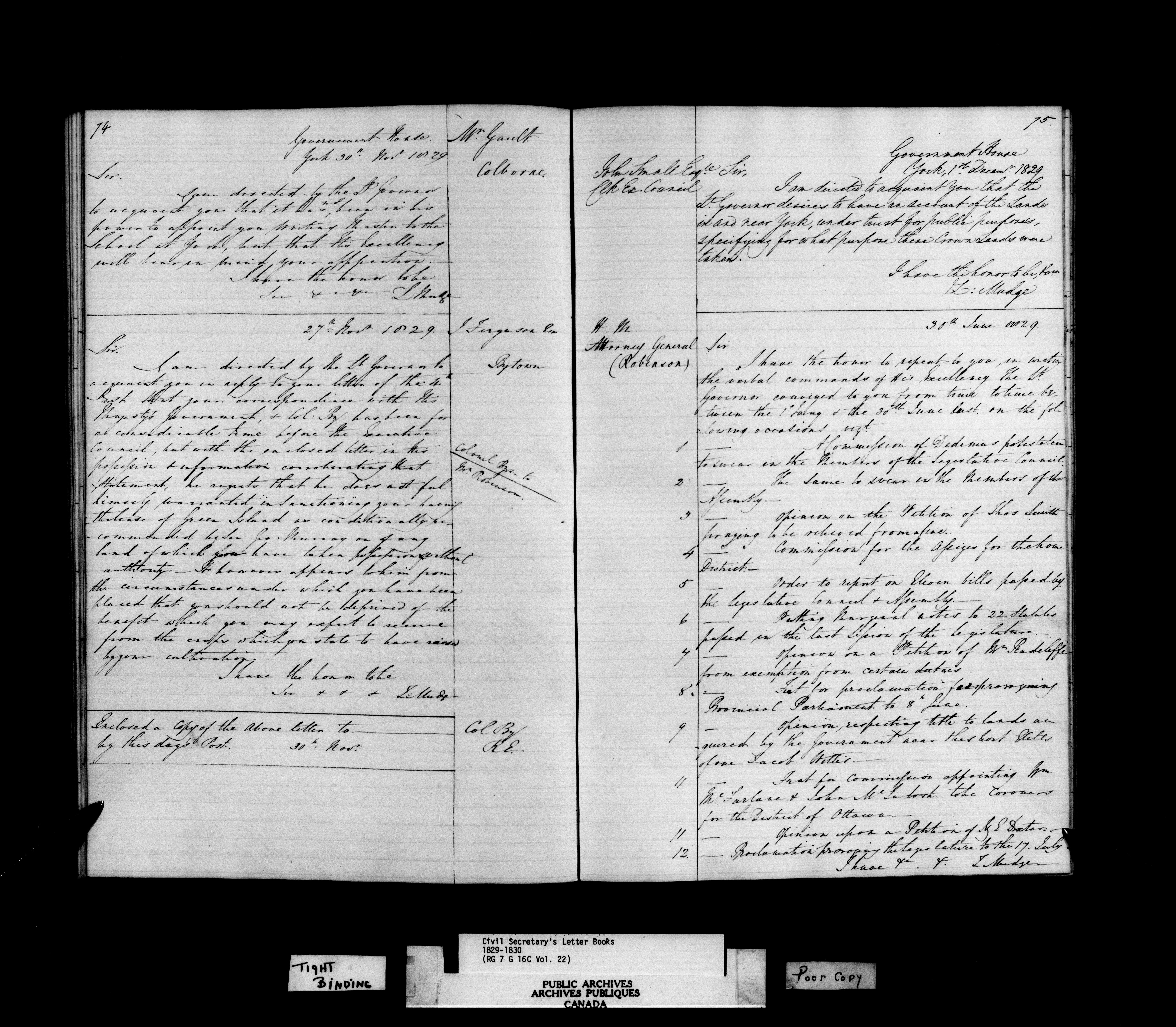 Canada, Governor General's Office, Civil Secretary's Letterbooks, Upper Canada - C-10791